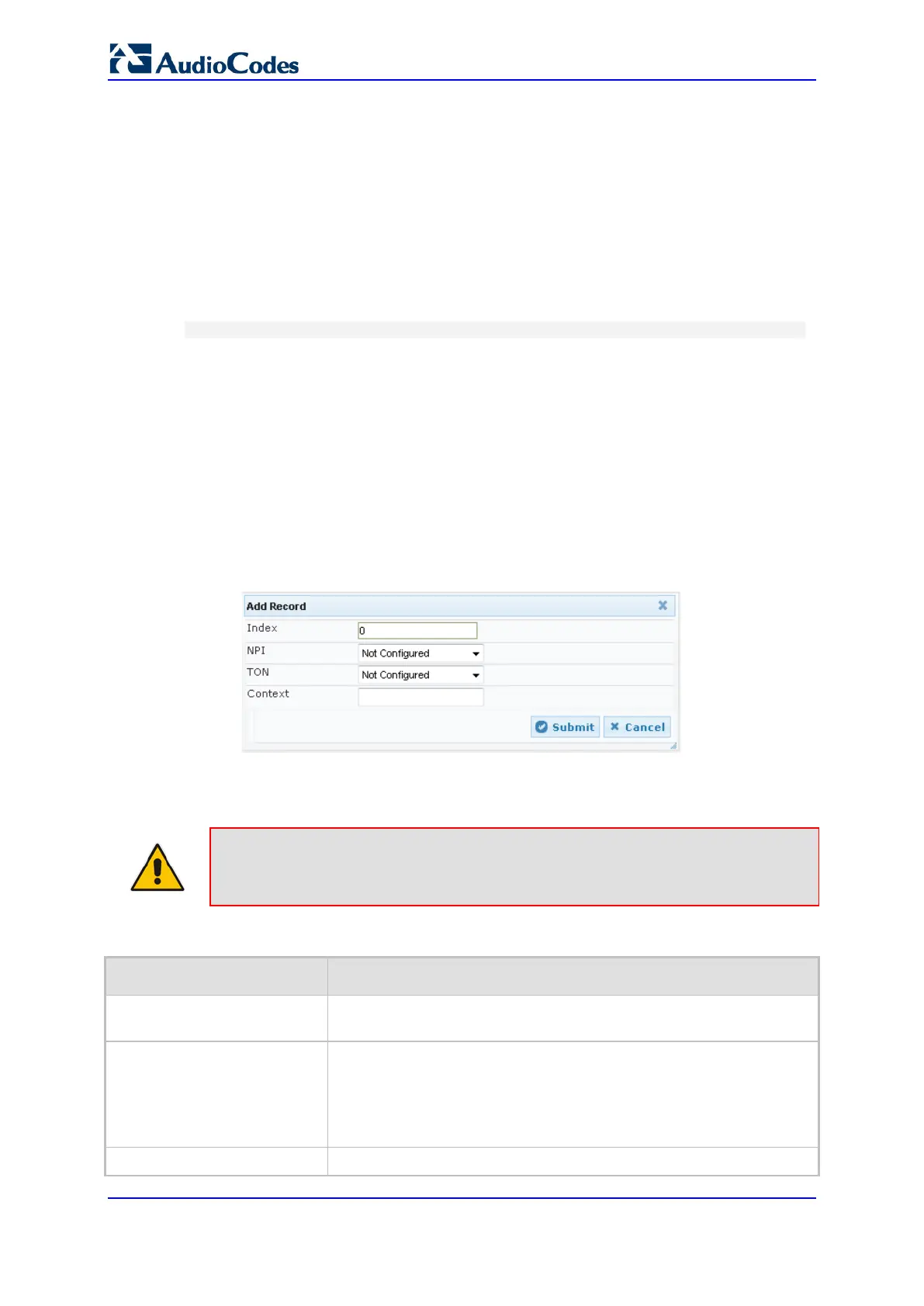 Note: You can configure multiple rows with the same NPI/TON or same SIP 'phone-