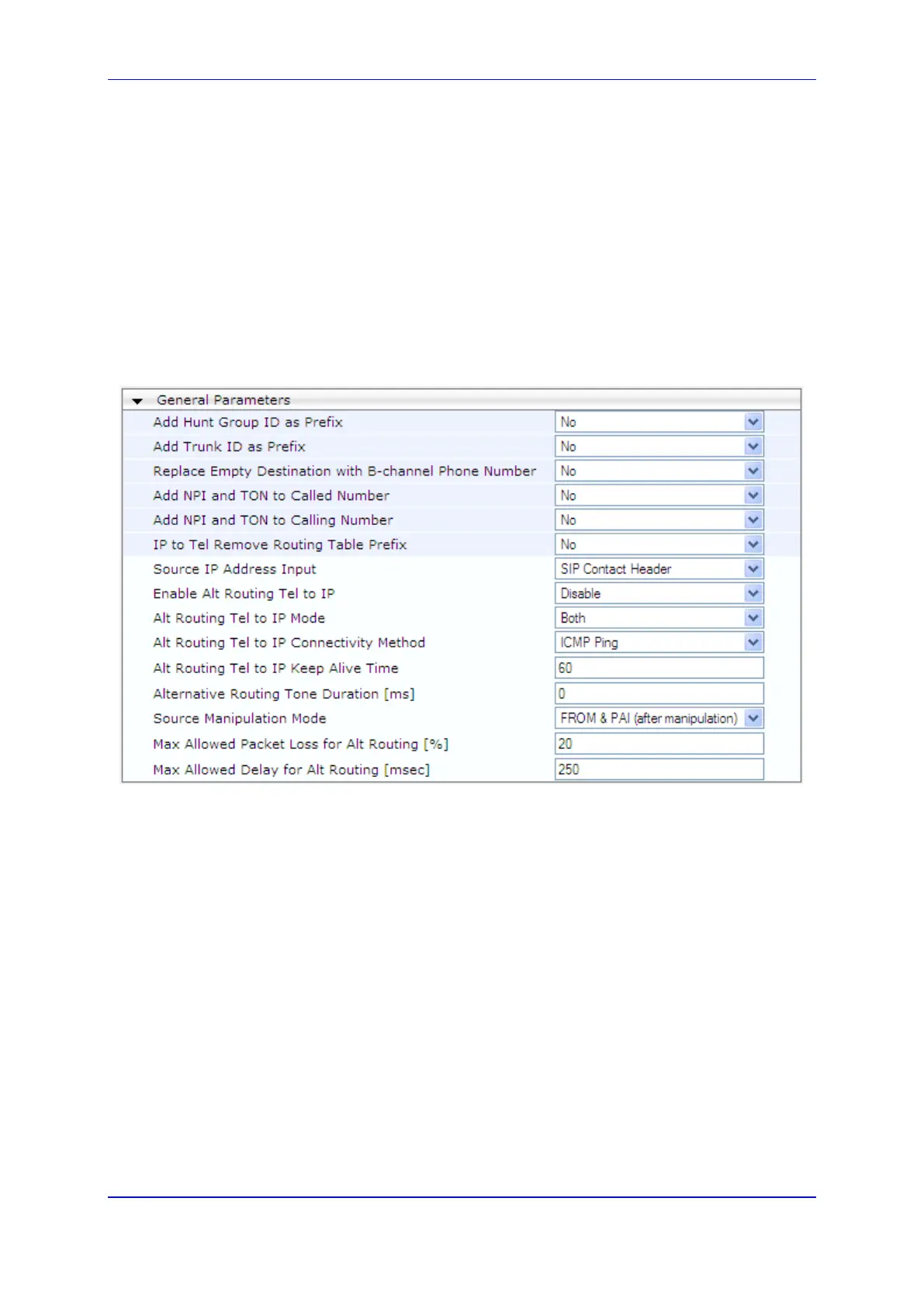1. Open the Routing General Parameters page (Configuration tab > VoIP menu > GW