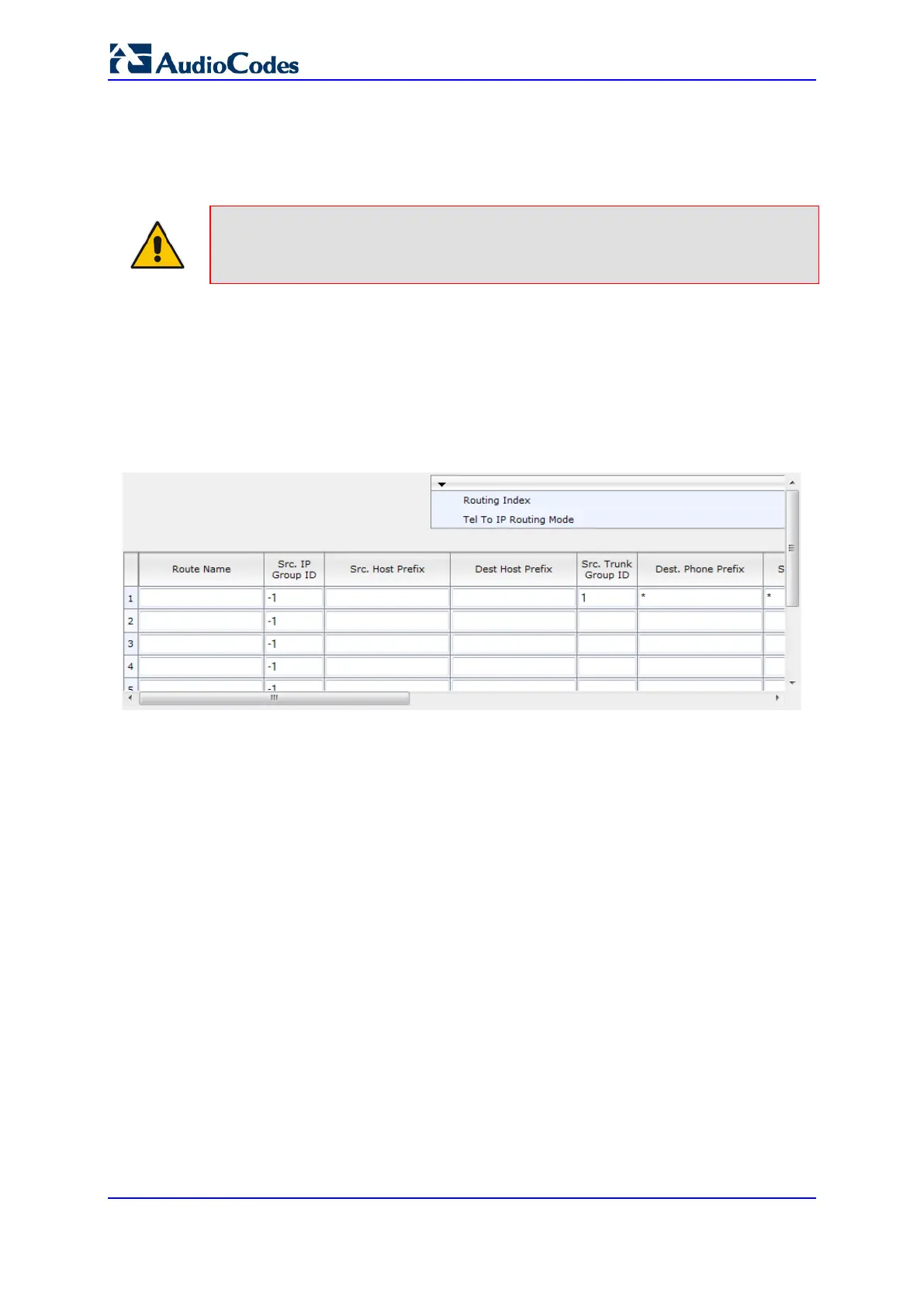 2. From the 'Routing Index' drop-down list, select the range of entries that you want to