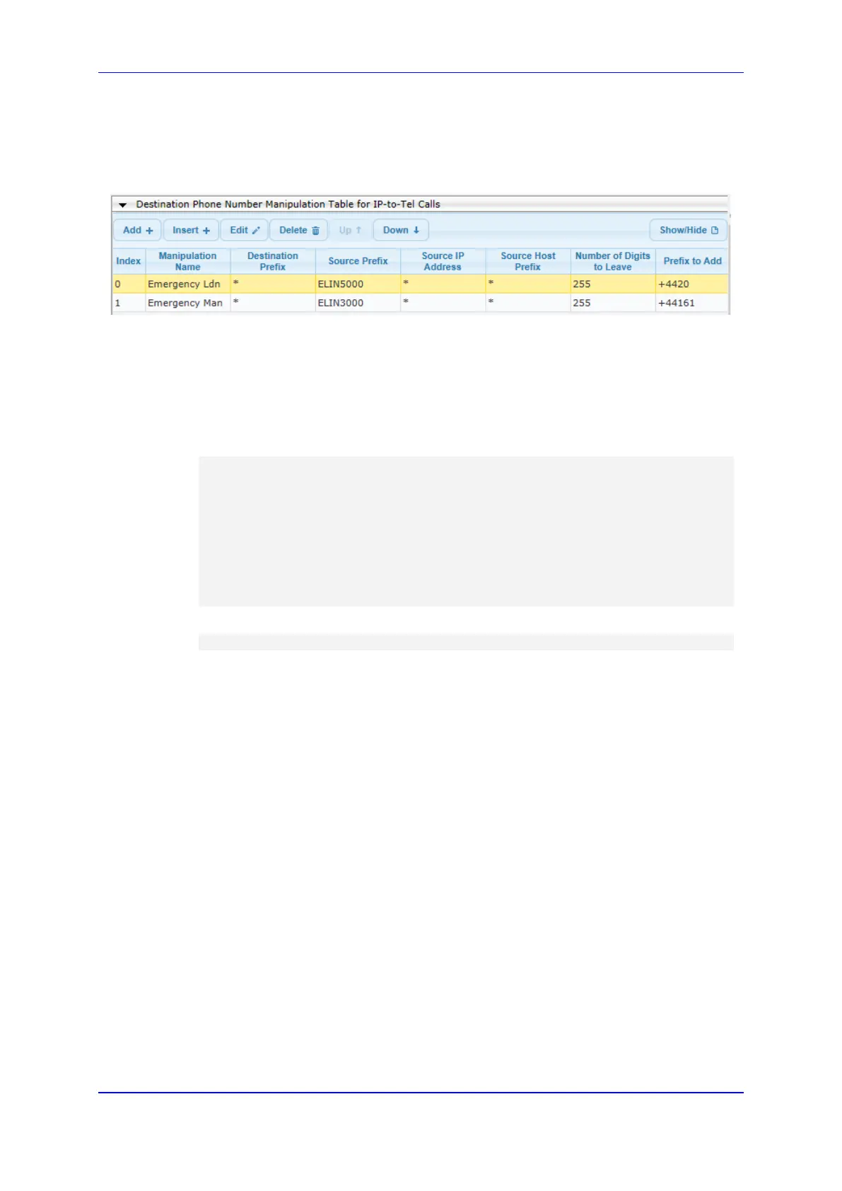 2. In the Destination Phone Number Manipulation Table for IP-to-Tel Calls