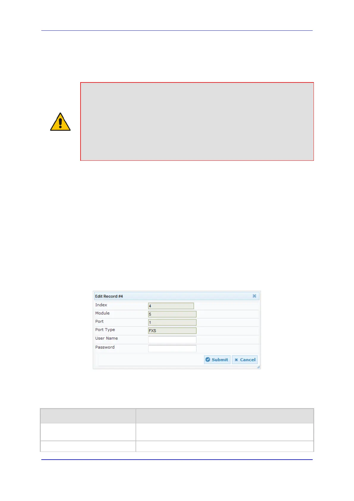 • If the user name or password is not configured in this table, the port's phone
