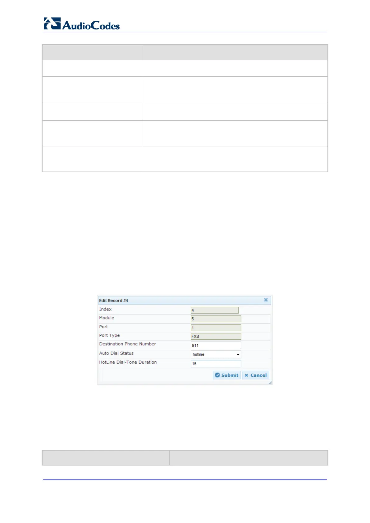 The Automatic Dialing table lets you configure telephone numbers that are automatically