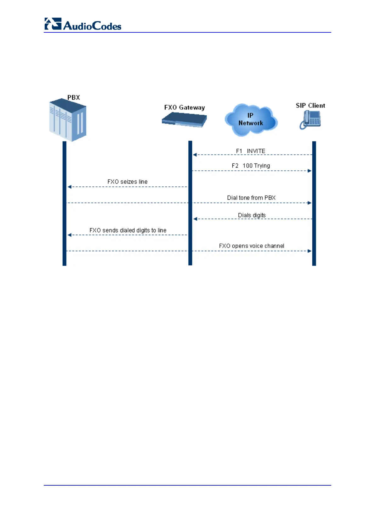 the FXO device and only after receiving a dial tone from the PBX (via the FXO device),