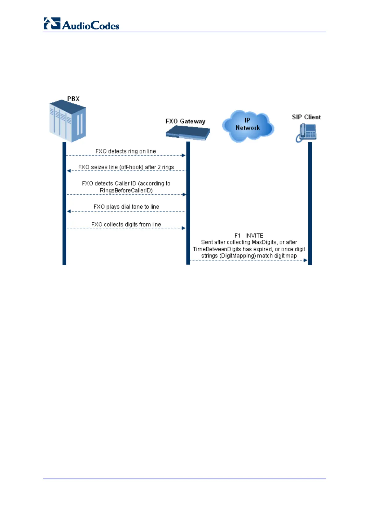 • FXO sends a hook-flash to the PBX, dials the digits (that are received in the