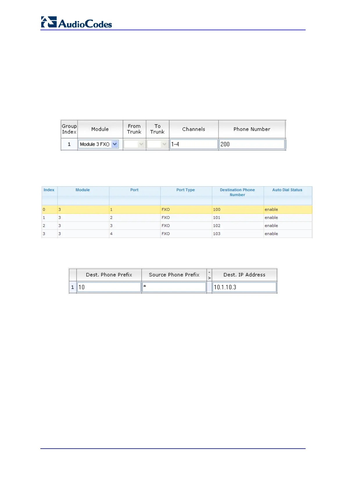 phone numbers 200 to 204 to the device’s FXO endpoints.