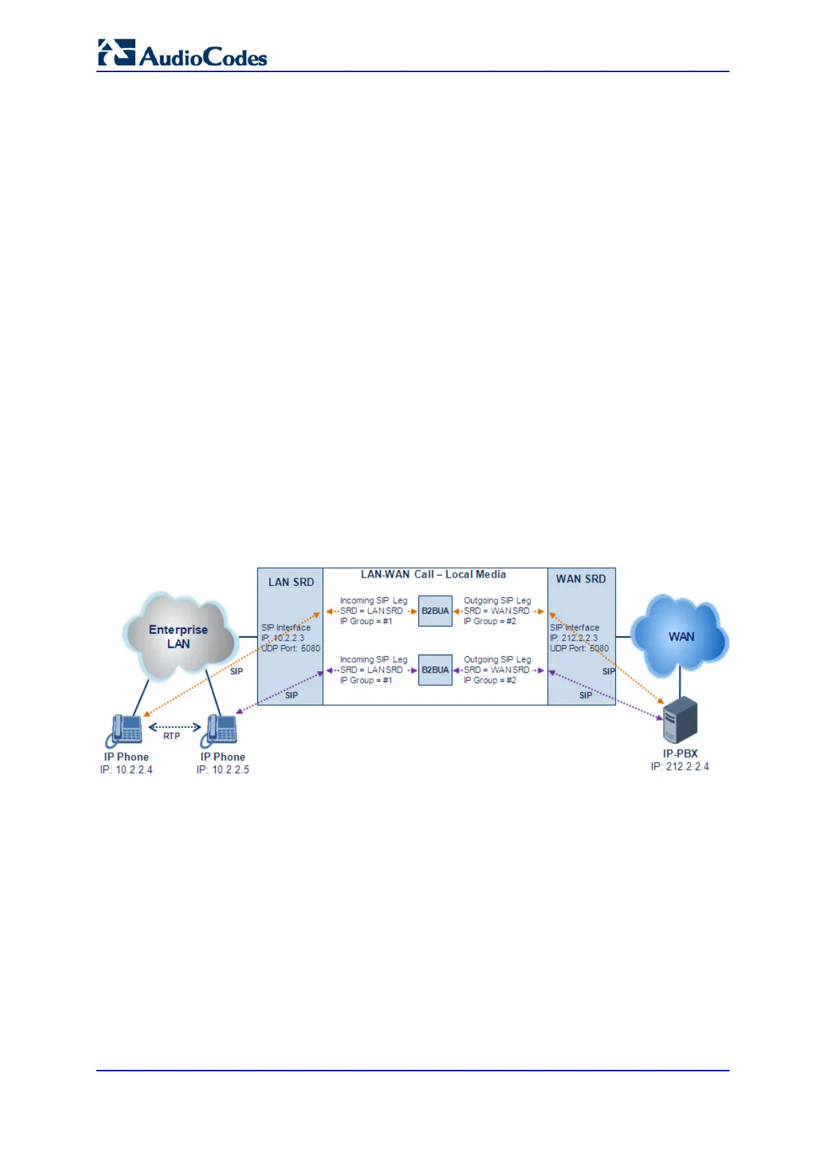 Internal LAN calls: When the SBC routes a call between two UAs within the same
