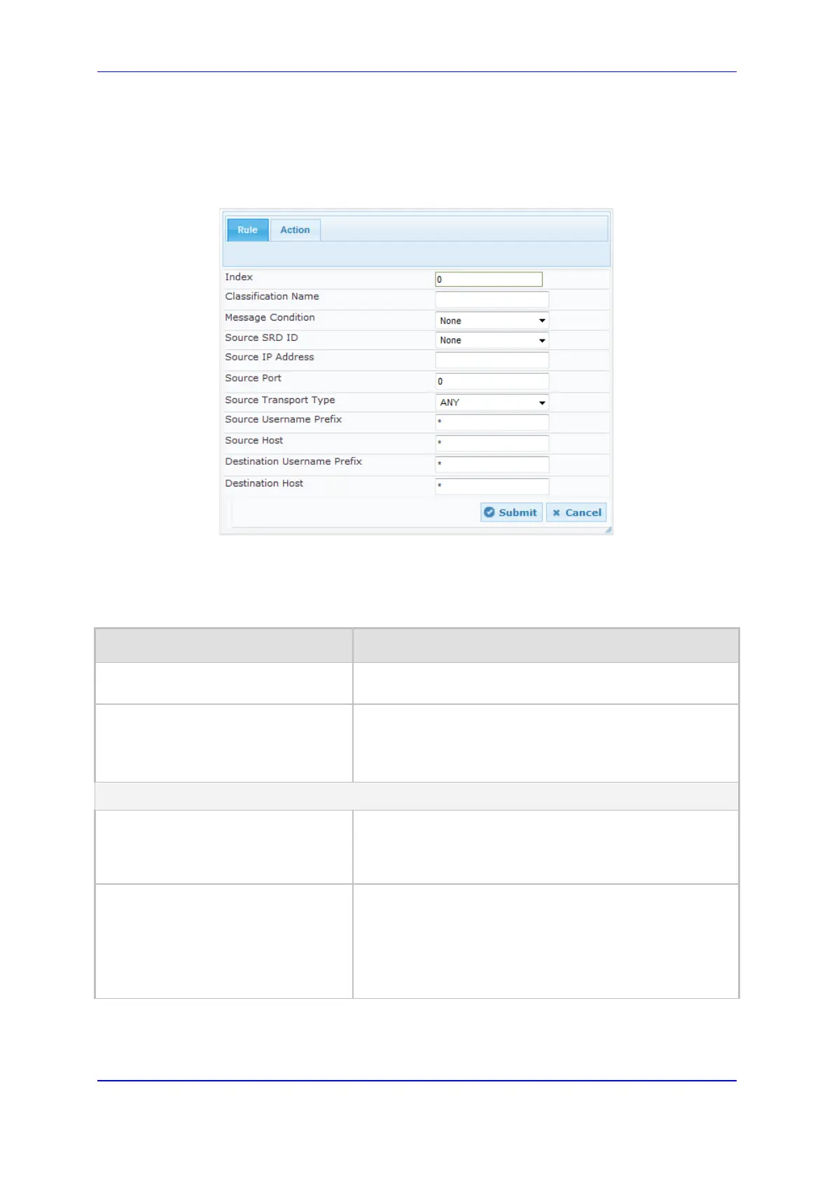 Routing SBC > Classification Table).