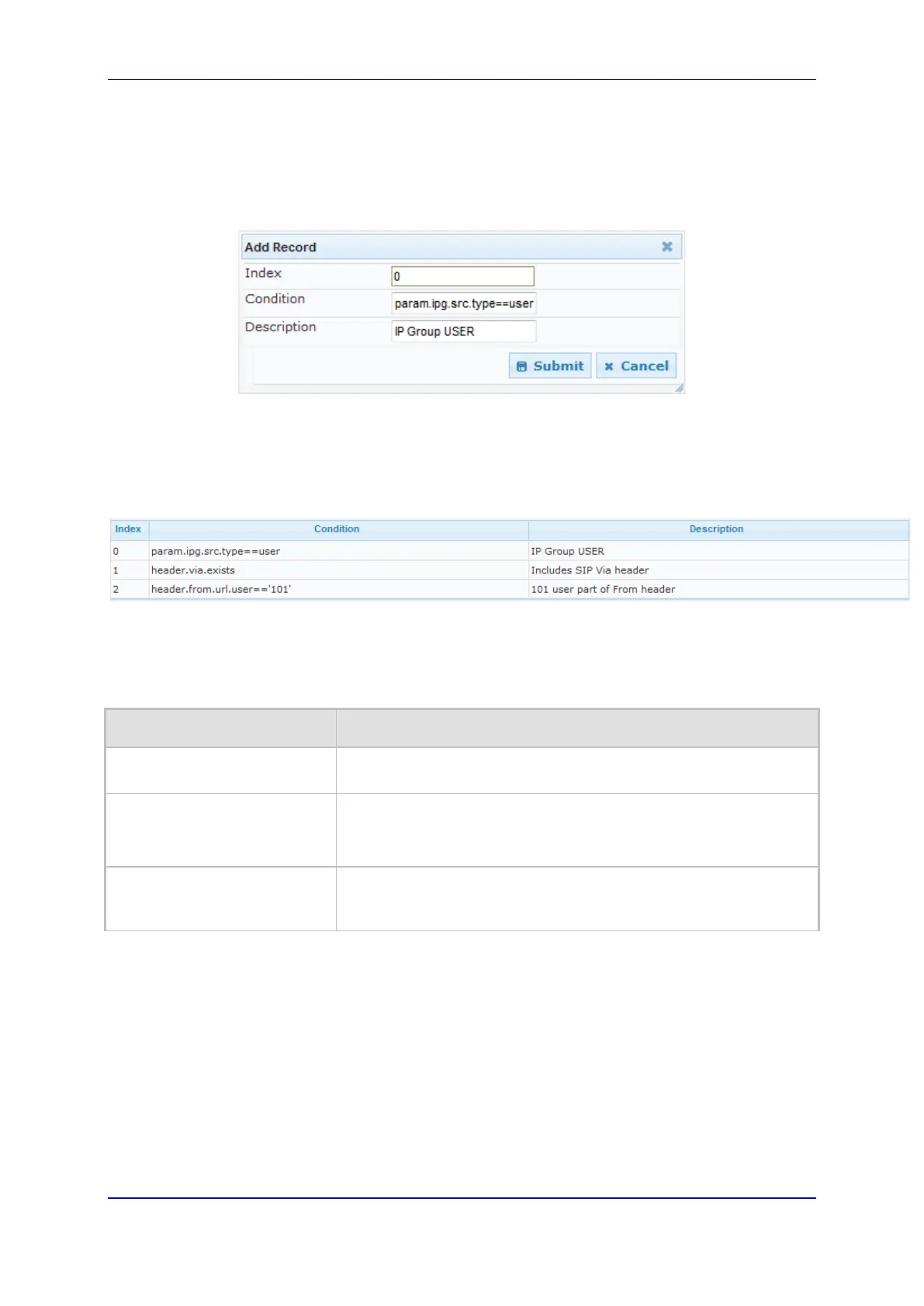 Defines the Condition rule of the SIP message.