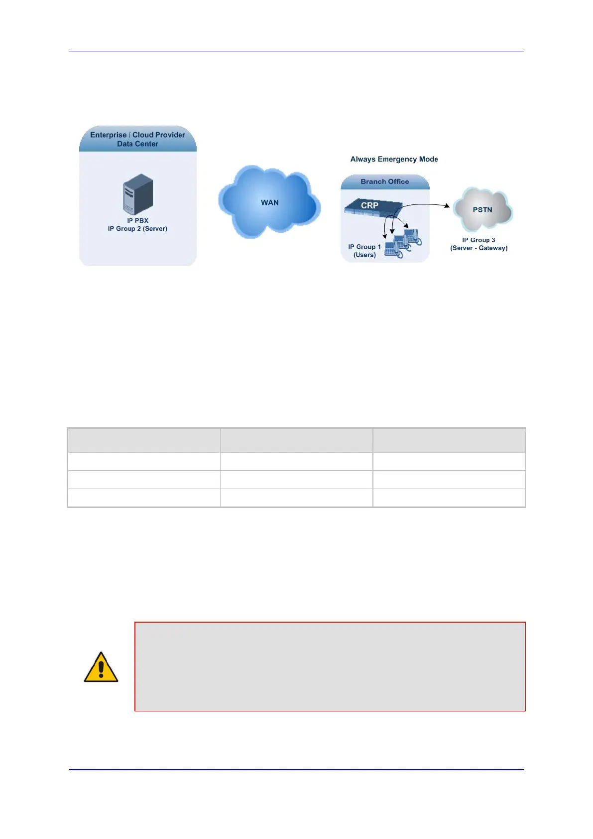 Always Emergency: The CRP routes the calls between the branch users themselves