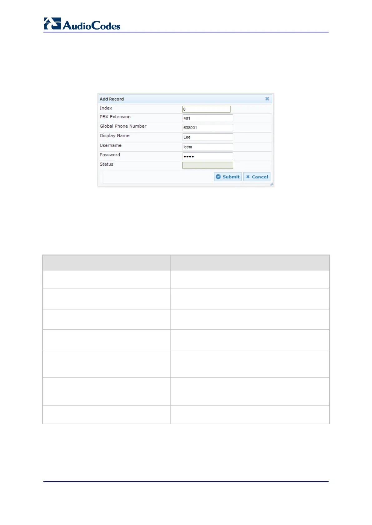 1. Open the GW User Info Table page (Configuration tab > VoIP menu > SIP