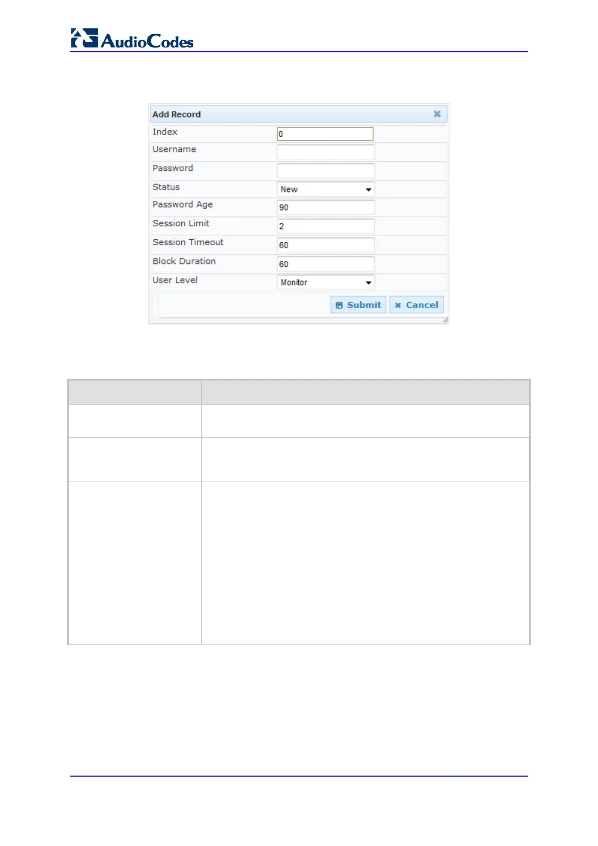 Figure 8-19: Web Users Table - Add Record Dialog Box