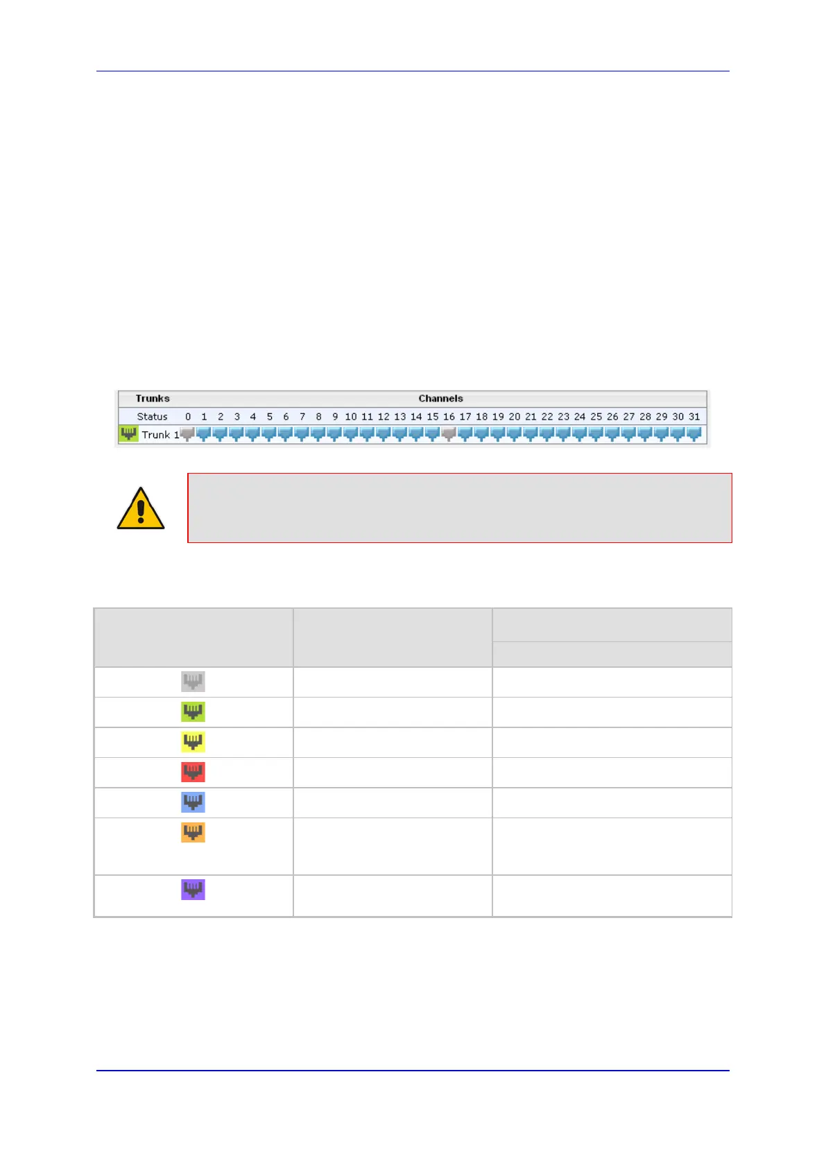 The status of the trunks is depicted by color-coded icons, as described in the table below: