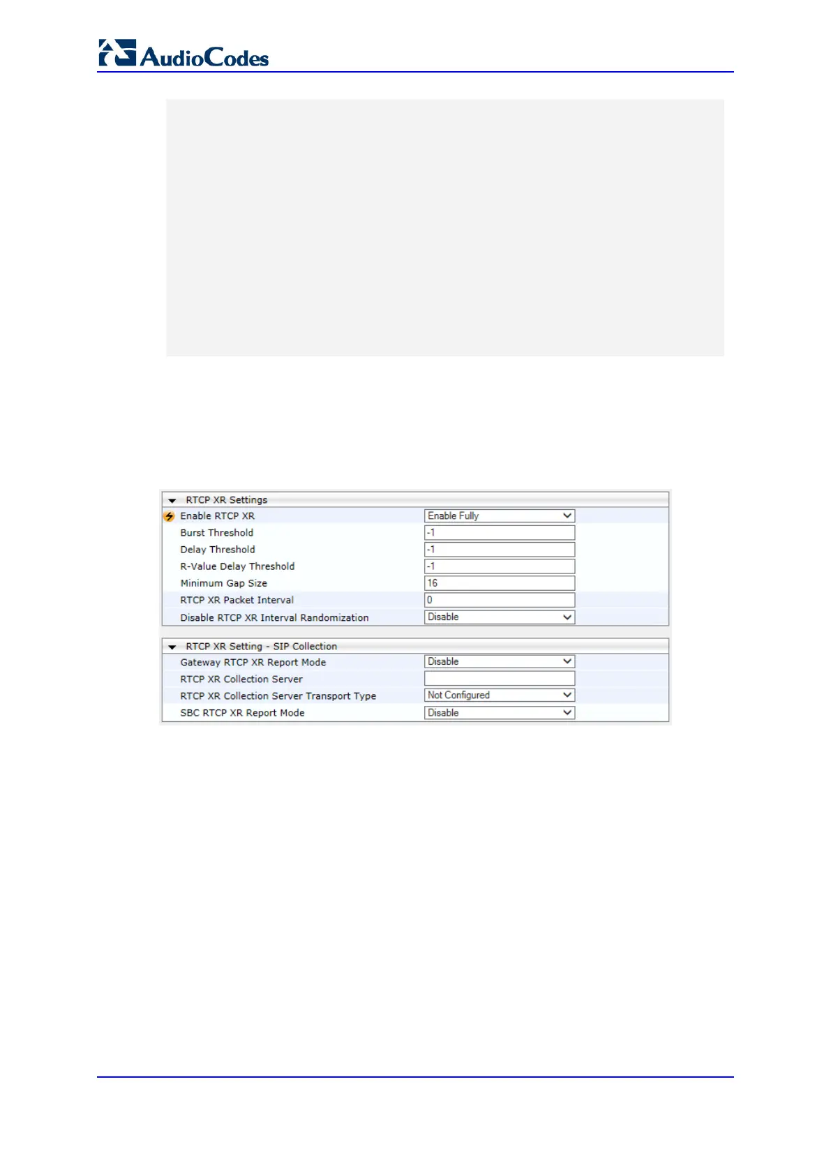 • 'Enable RTCP XR' (VQMonEnable) - enables voice quality monitoring and RTCP
