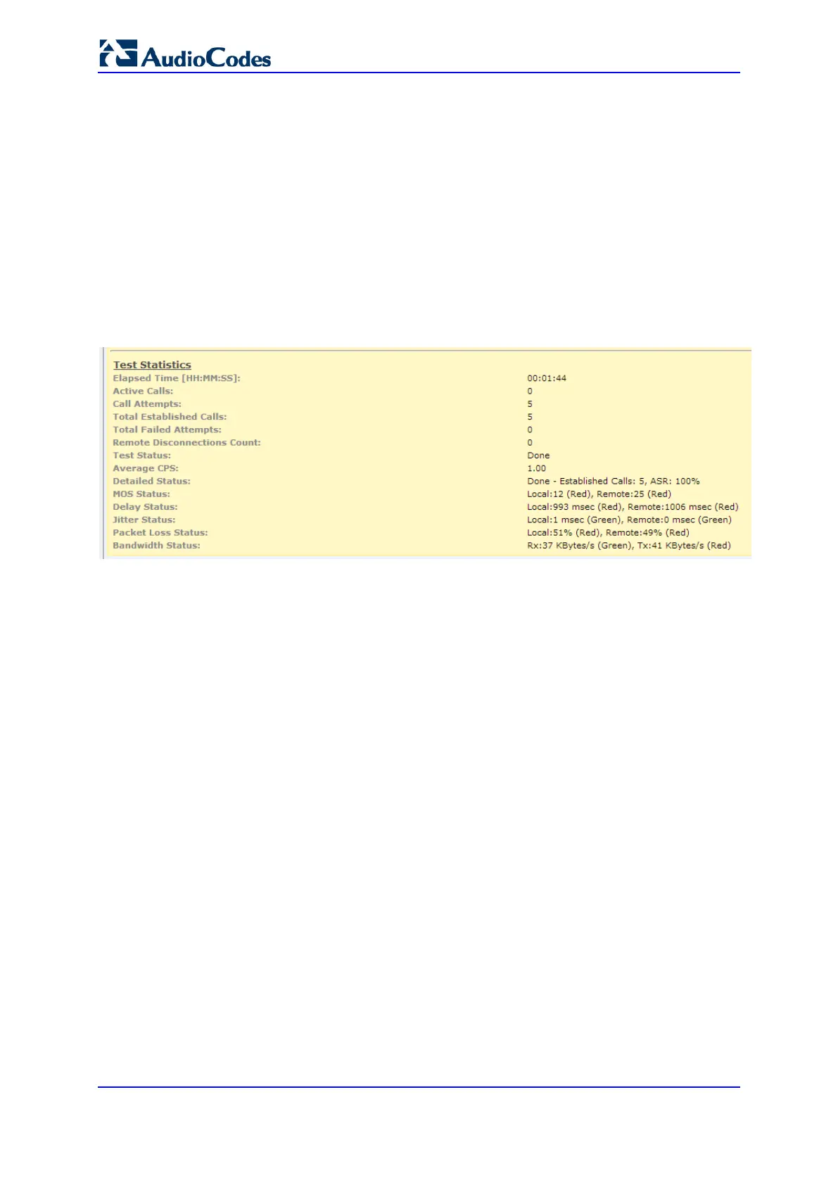 Elapsed Time: Duration of the test call since it was started (or restarted).