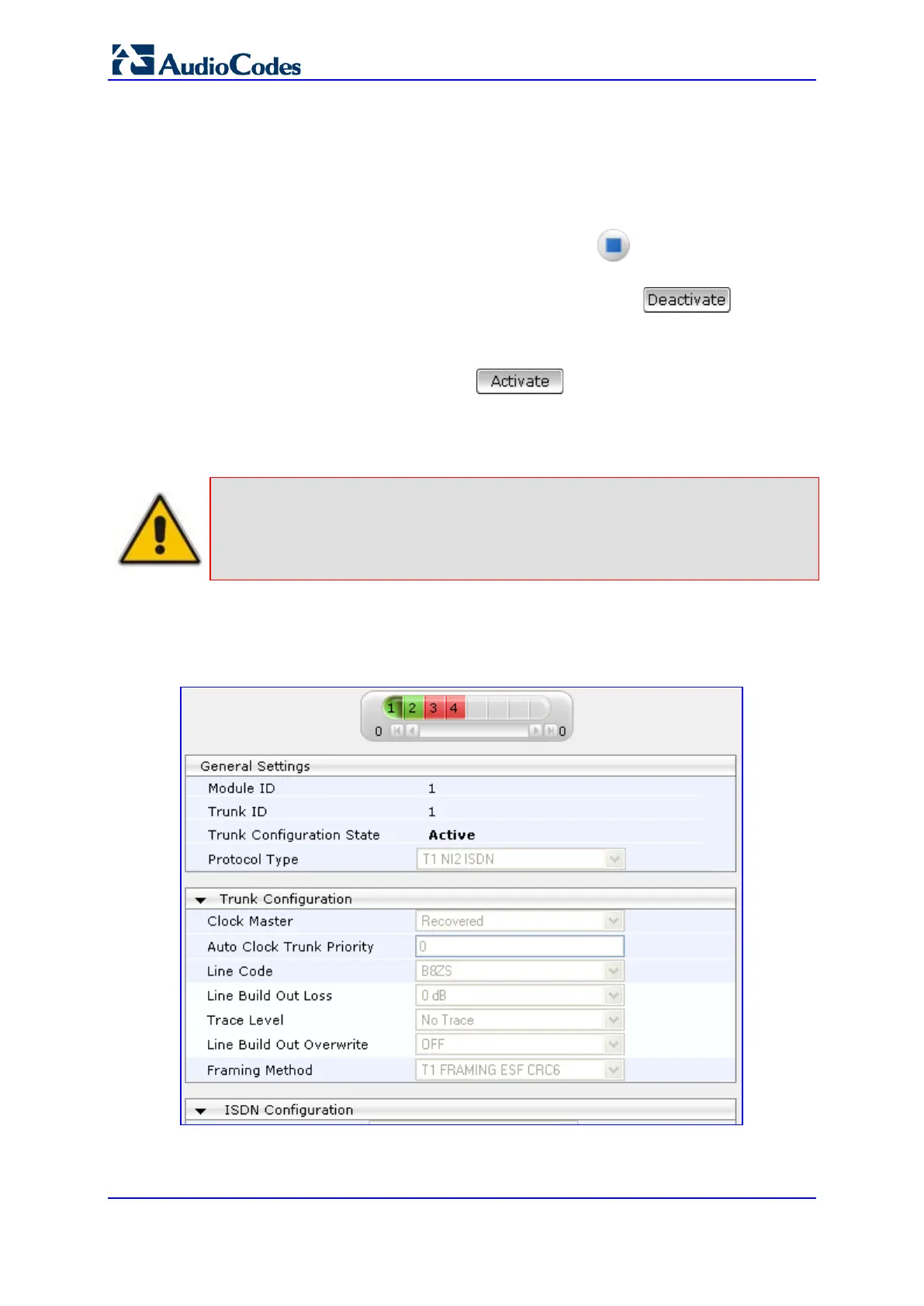 maintenance. Deactivation temporarily disconnects (logically) the trunk from the PSTN