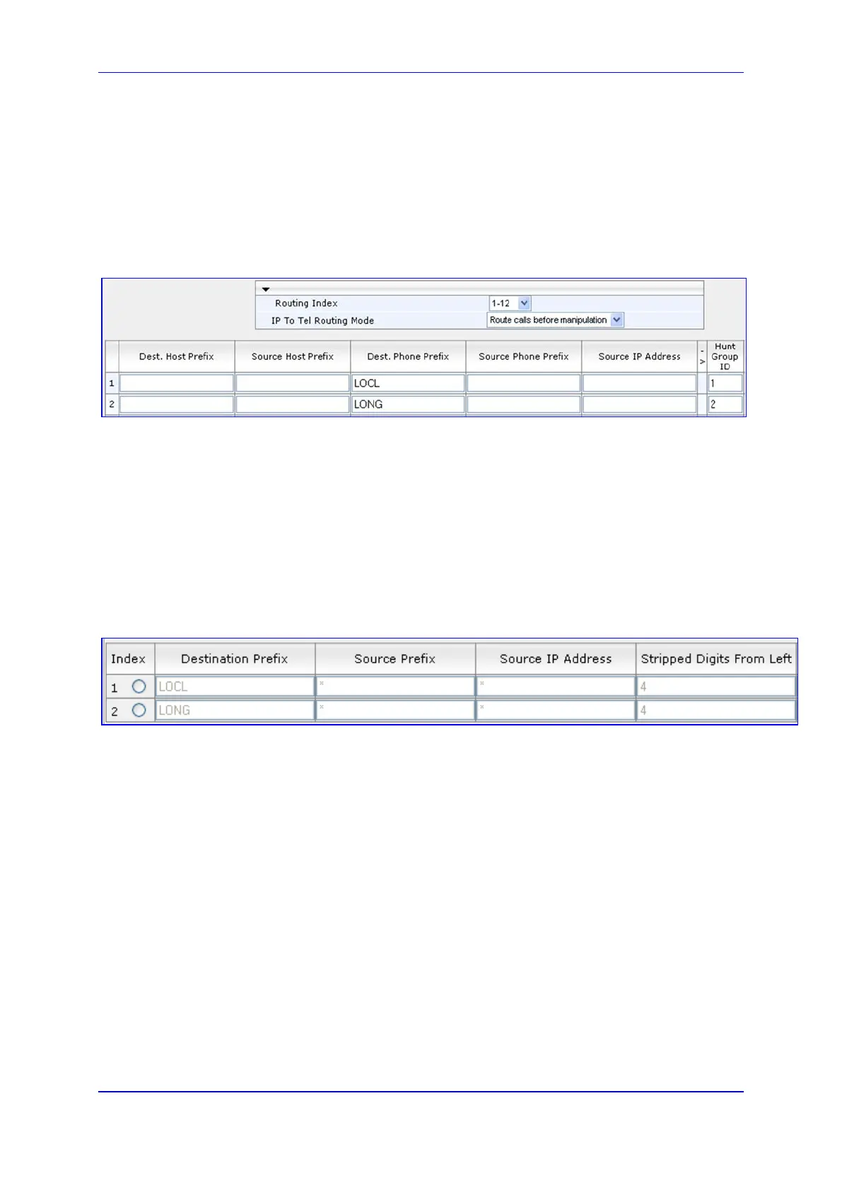 Table (Configuration tab > VoIP menu > GW and IP to IP submenu > Routing