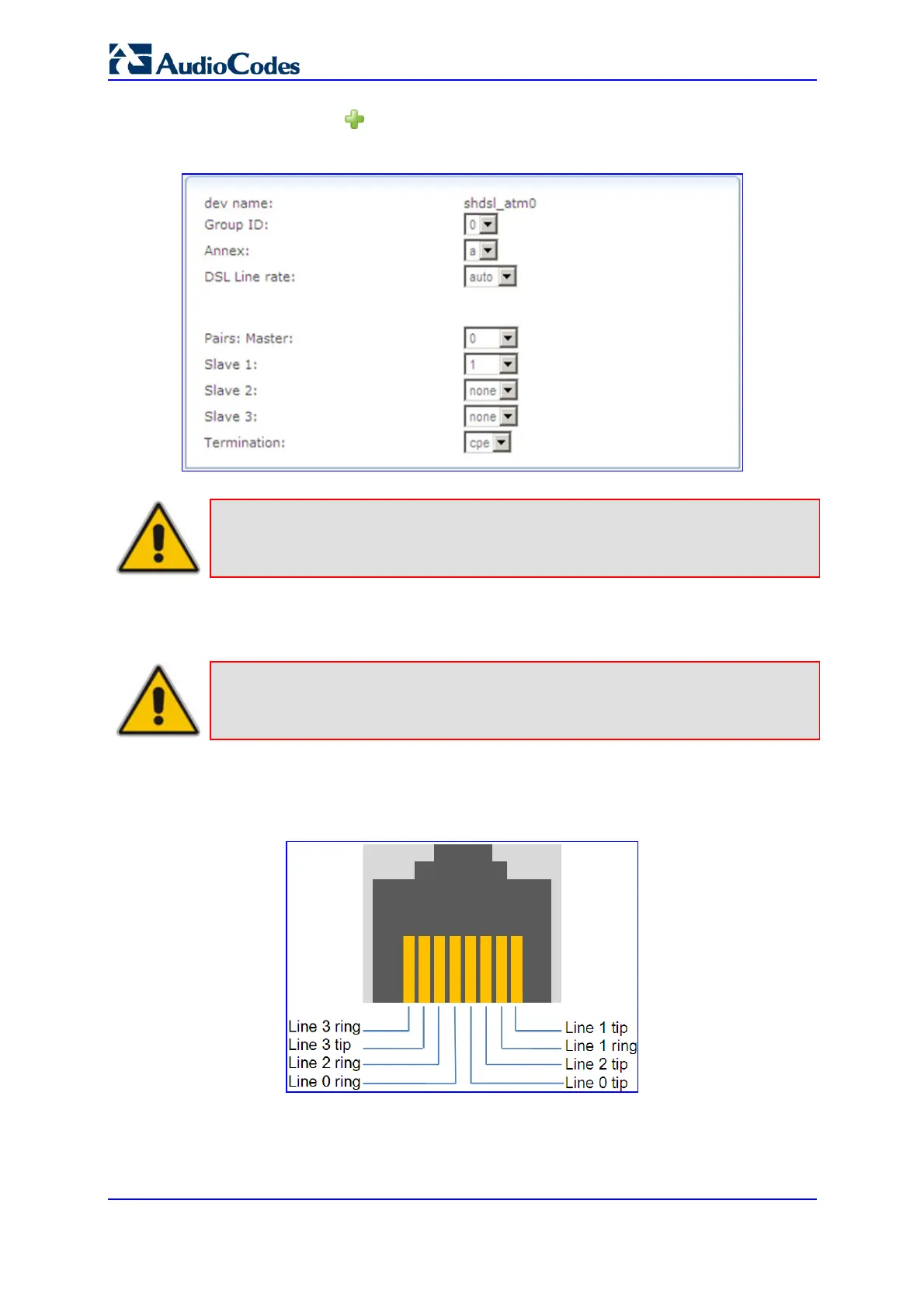 Figure 3-136: SHDSL RJ-45 Wire Pinouts