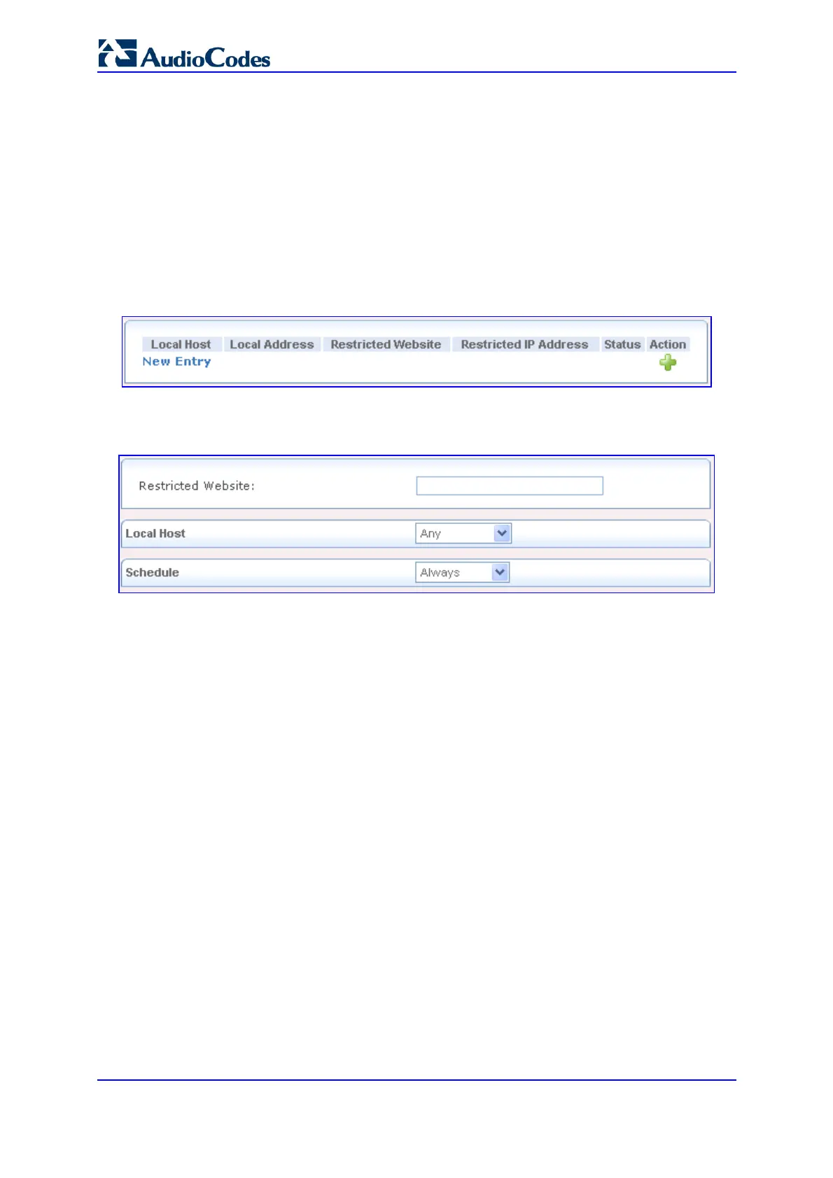 3. In the 'Restricted Website' field, enter the URL (or part of the URL) that you want to