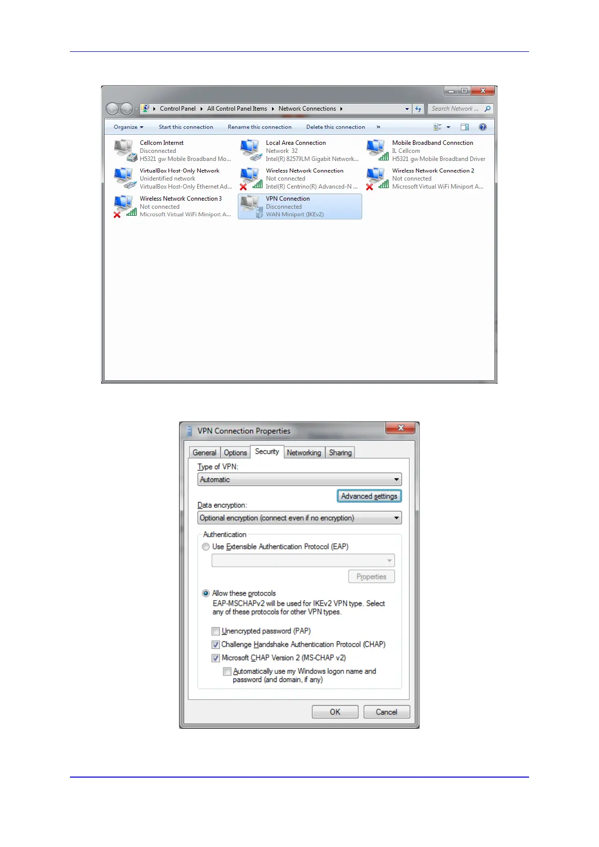 Figure 8-7: VPN Connection Properties Security Tab