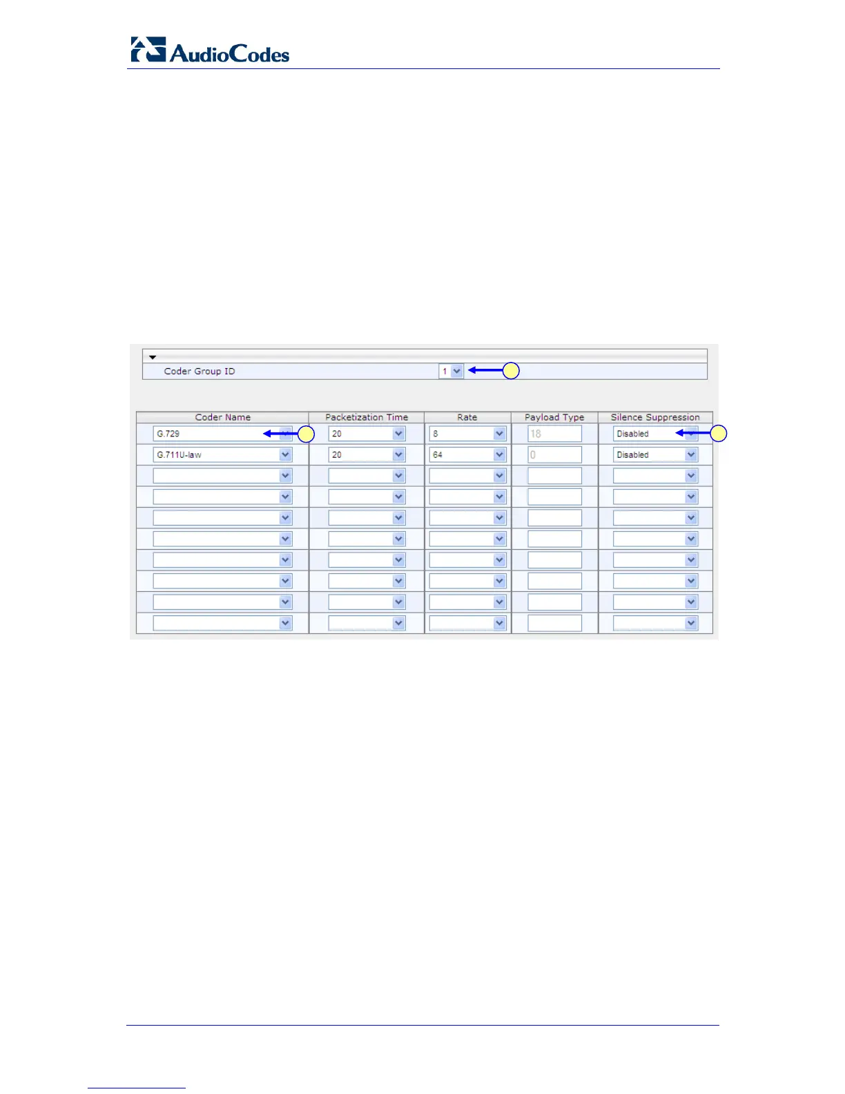 1.  Open the 'Coders Table' page (Configuration tab > VoIP menu > Coders And
