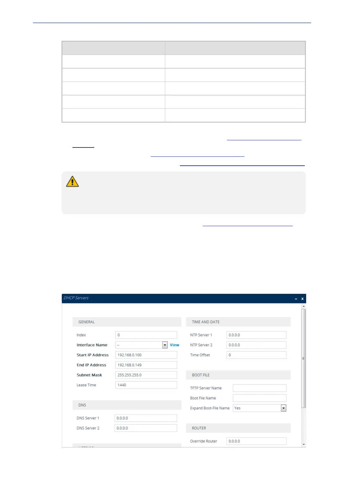 default ones, which are configured in the DHCP Servers table. For example, if you