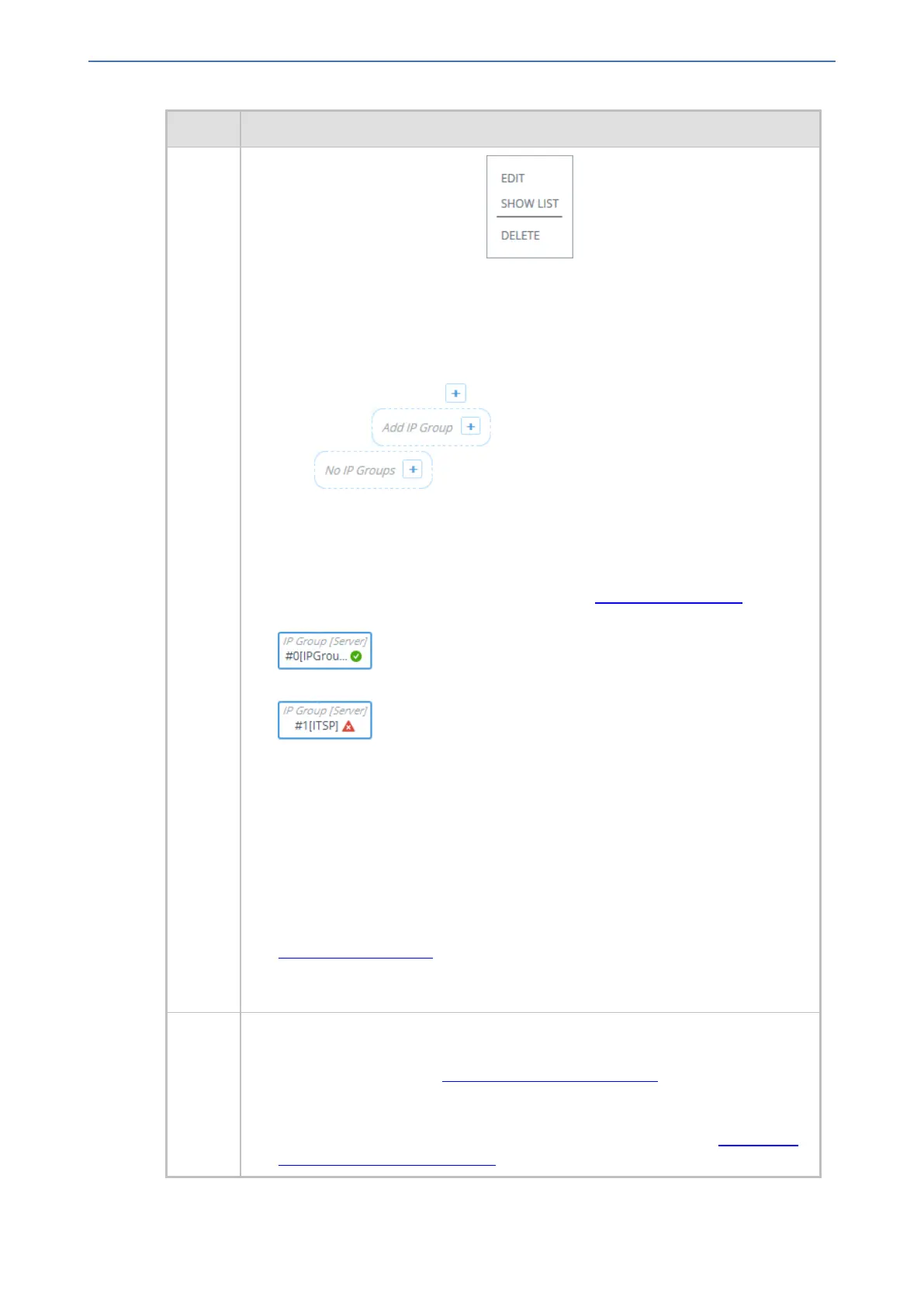 ■ Edit: Opens a dialog box in the IP Groups table to modify the IP Group.