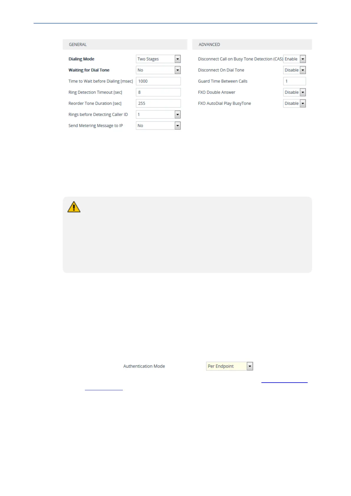 ● The feature is applicable to the Gateway application only - FXS and FXO