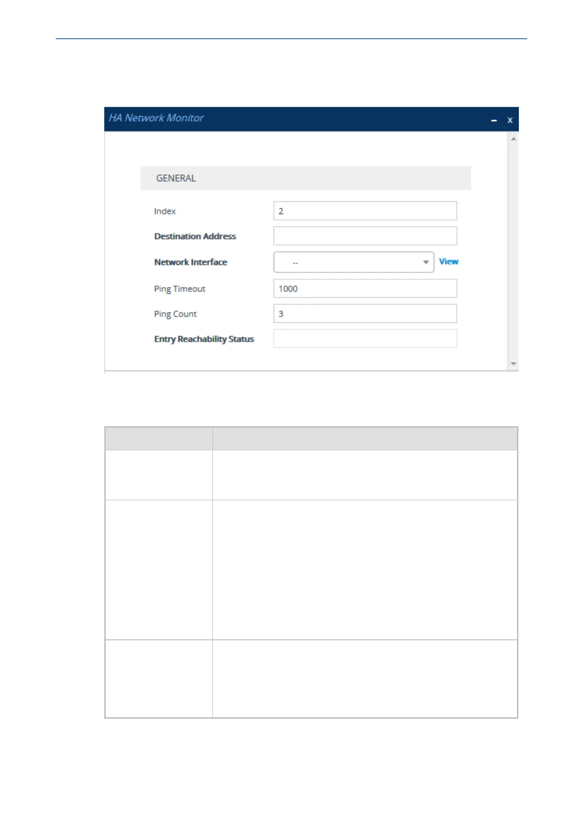 6. Configure an HA network monitor entry according to the parameters described in the table