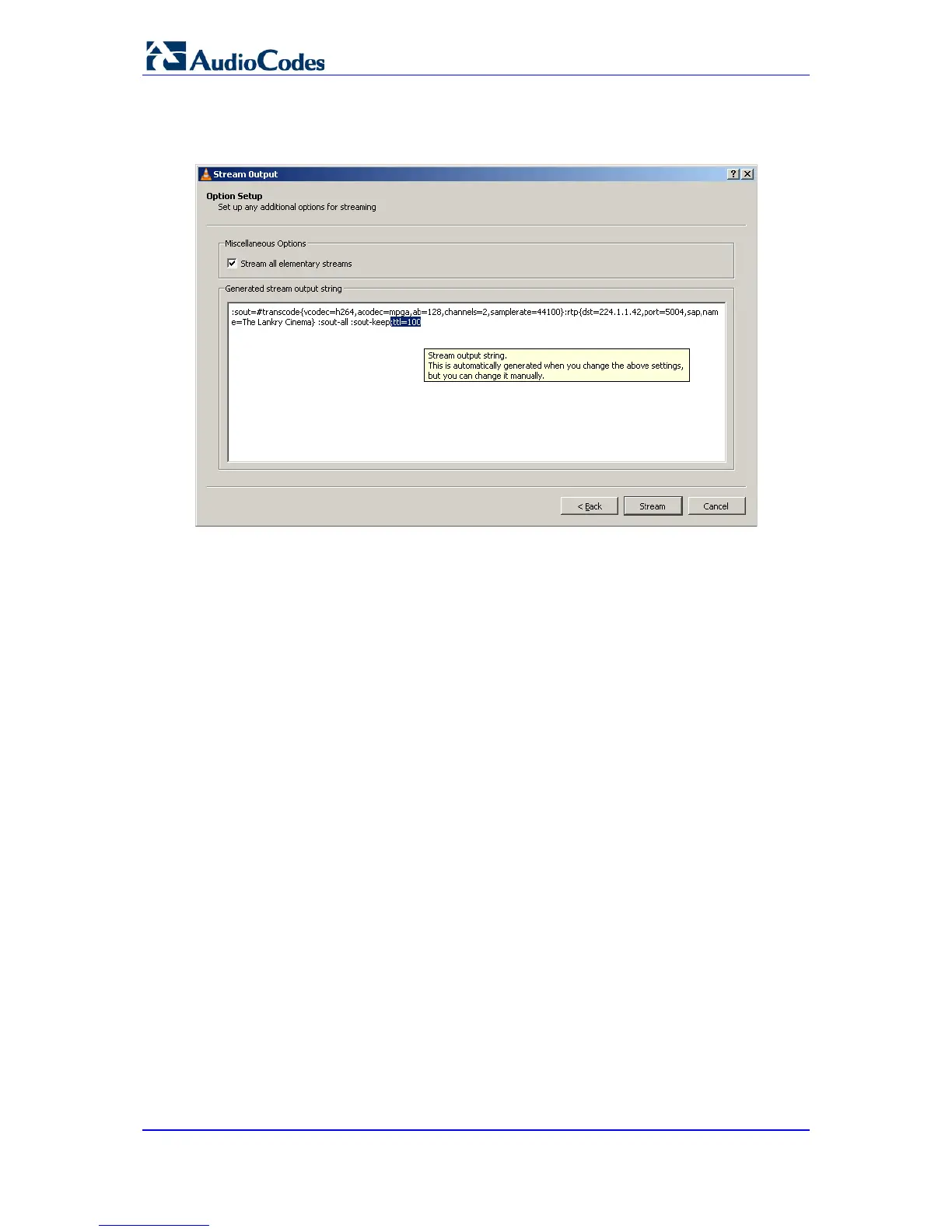 Figure 21-6: Stream Output-Destination Setup-Option Setup