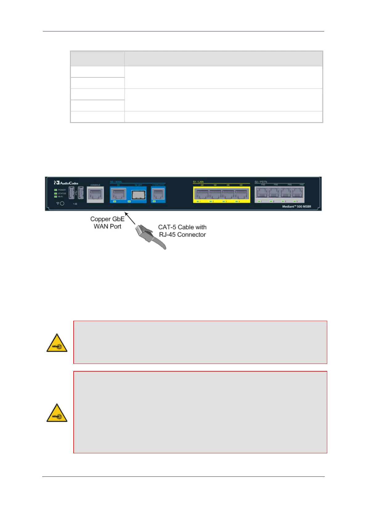 Figure 5-2: Cabling the WAN Copper GbE Port