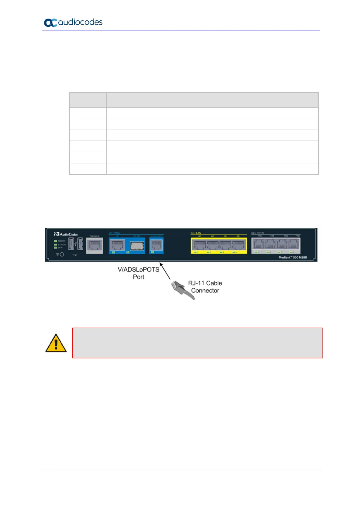 Table 5-2: RJ-11 Connector Pinouts for xDSL