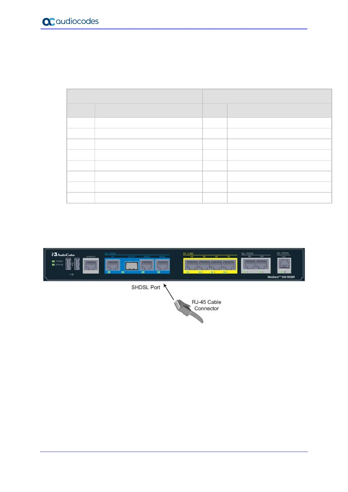 Table 5-3: RJ-45 Connector Pinouts for SHDSL