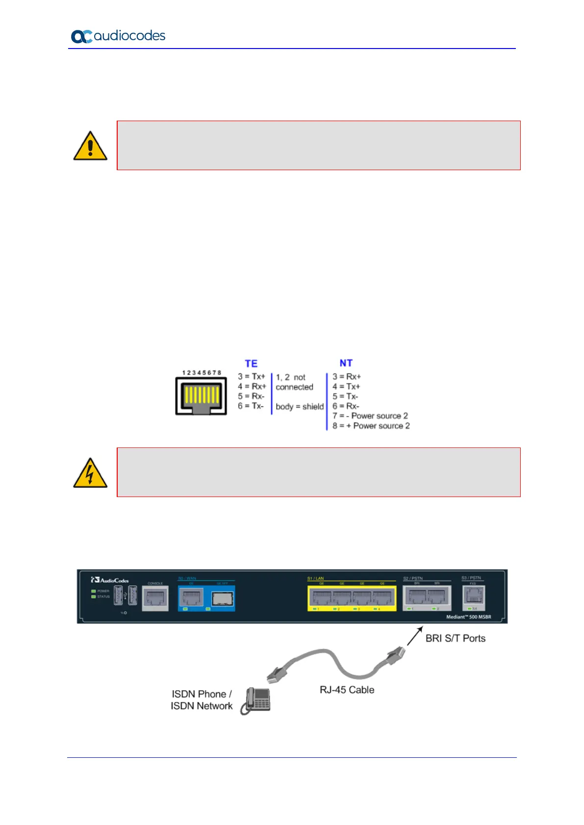 1. Connect the BRI cable to the device's BRI RJ-45 port, labeled S2 / PSTN BRI.