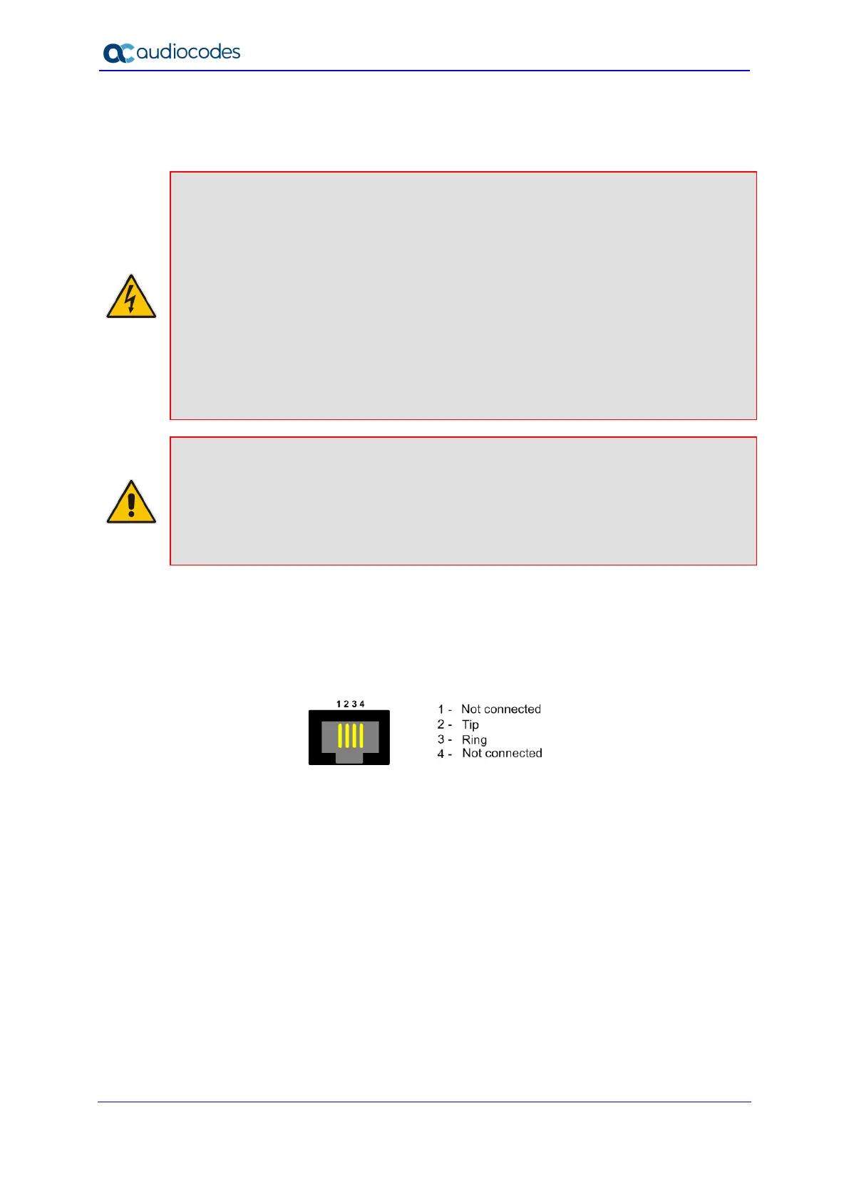 Figure 5-16: RJ-11 Connector Pinouts for FXO Interface