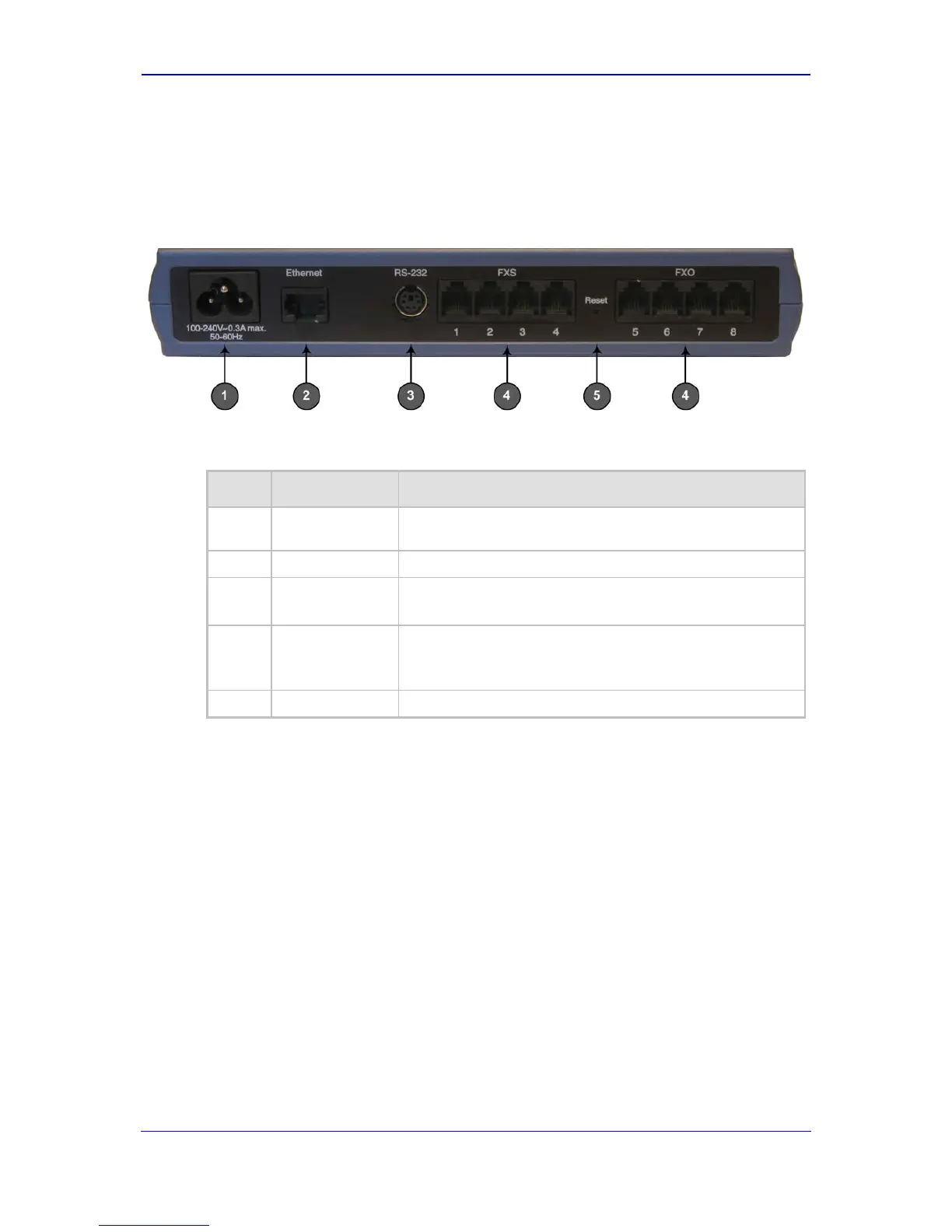 The device's rear panel provides the ports for cabling the device to the various interfaces.