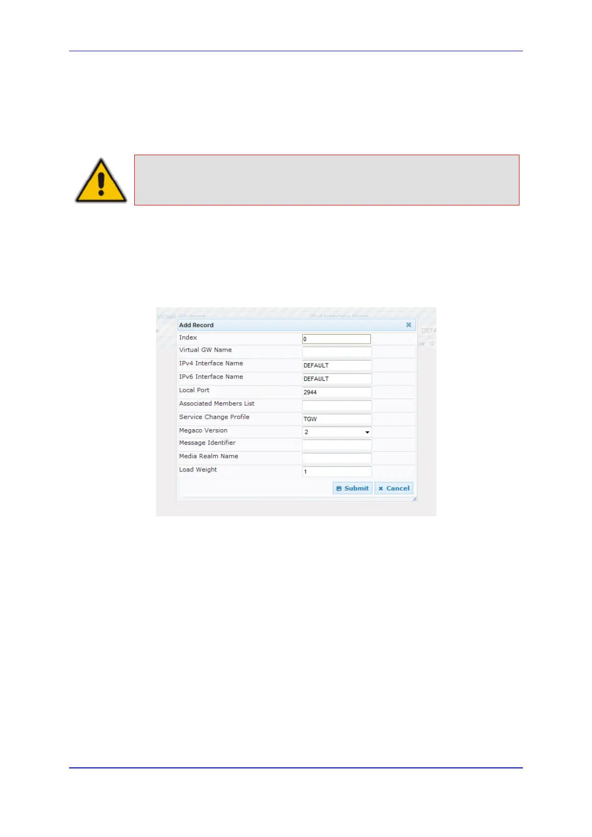 Figure 74: MEGACO Control Interface Settings