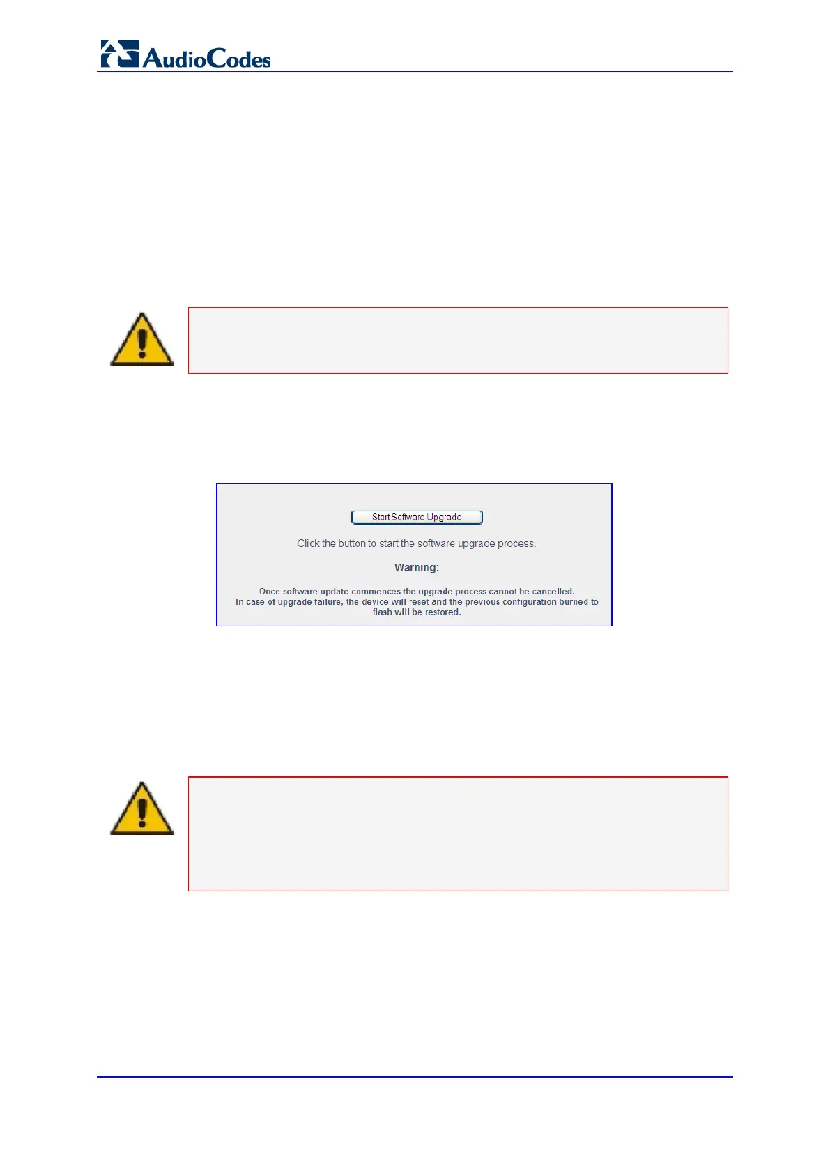 traffic, disable all traffic on the device before initiating the Software Upgrade Wizard.