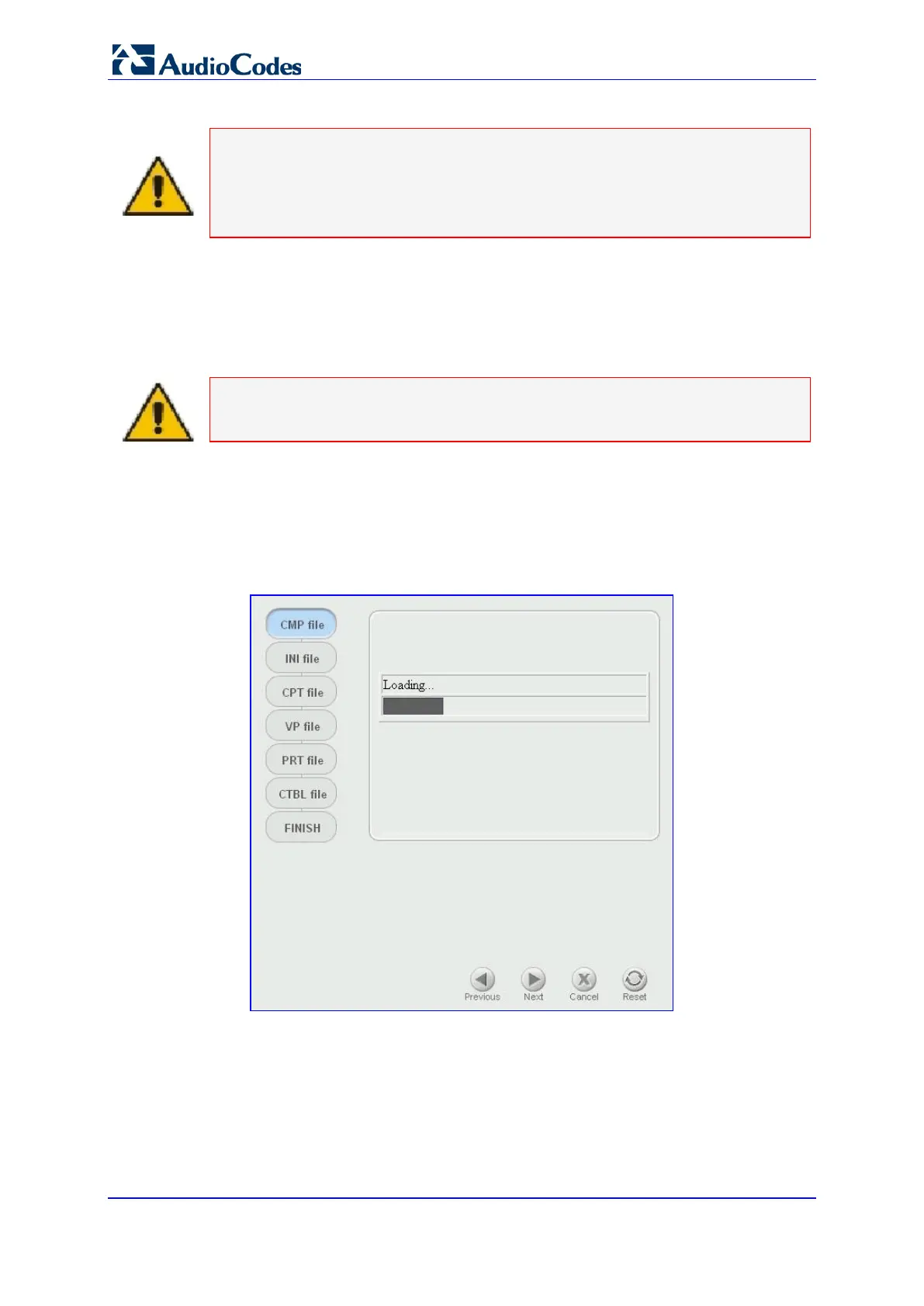 Note: In Hitless mode, the user will be able to only upload a CMP file (no other