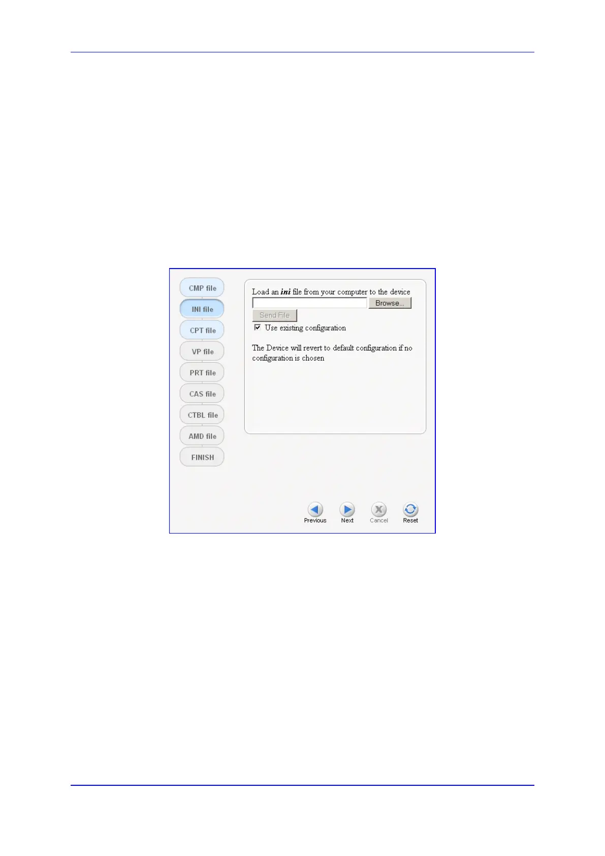 ♦ Load a new auxiliary file to the device using the Browse and Send File