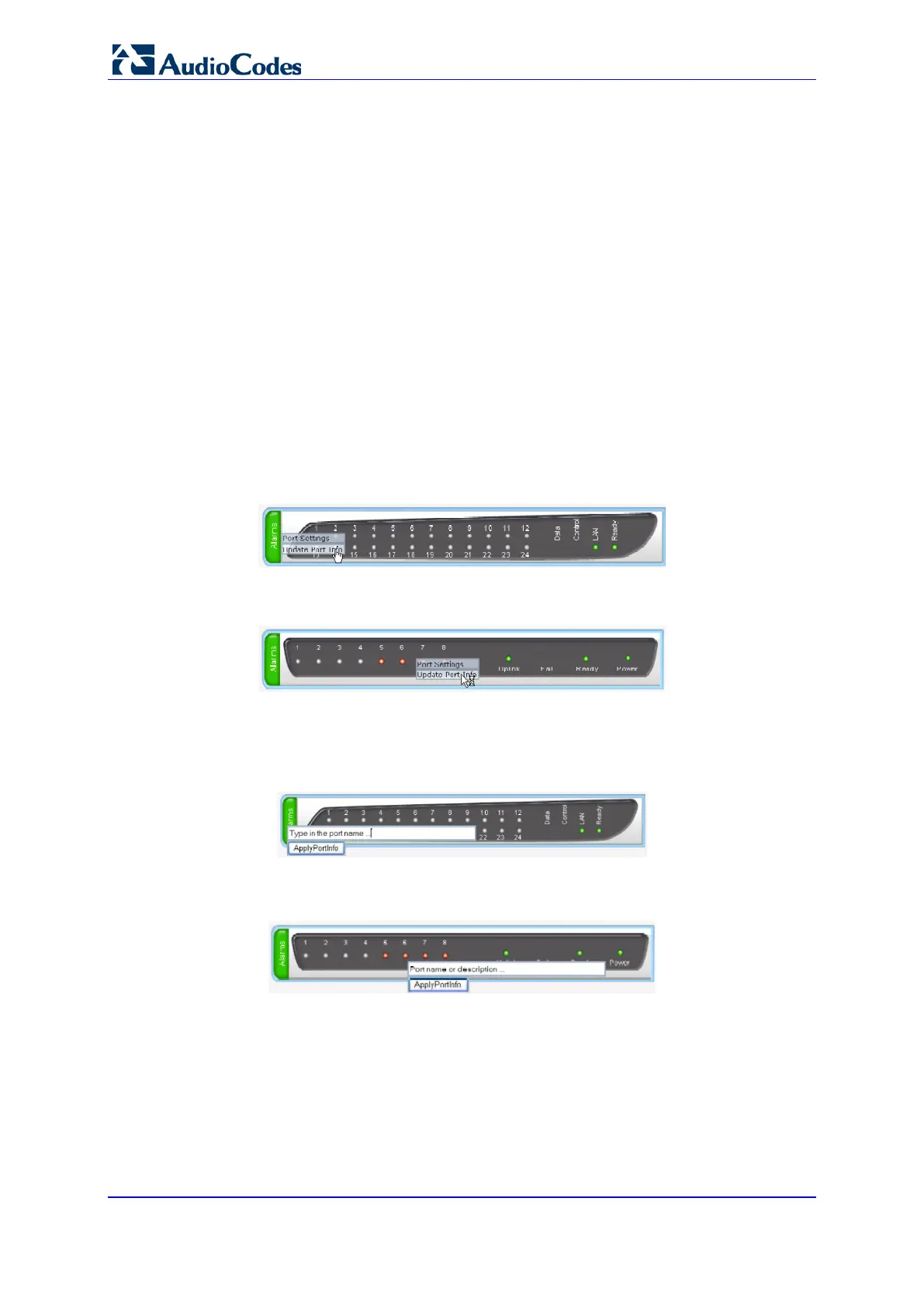 2. From the shortcut menu, choose Update Port Info; a text box appears.