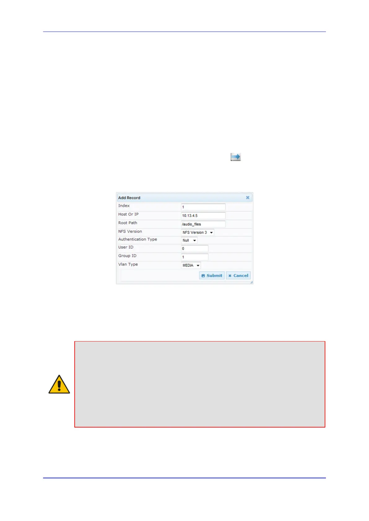 4. Click the Submit button; the remote NFS file system is immediately applied, which can