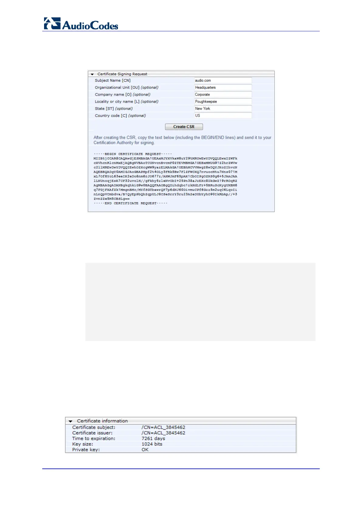 c. Click the Create CSR button; a textual certificate signing request is displayed in