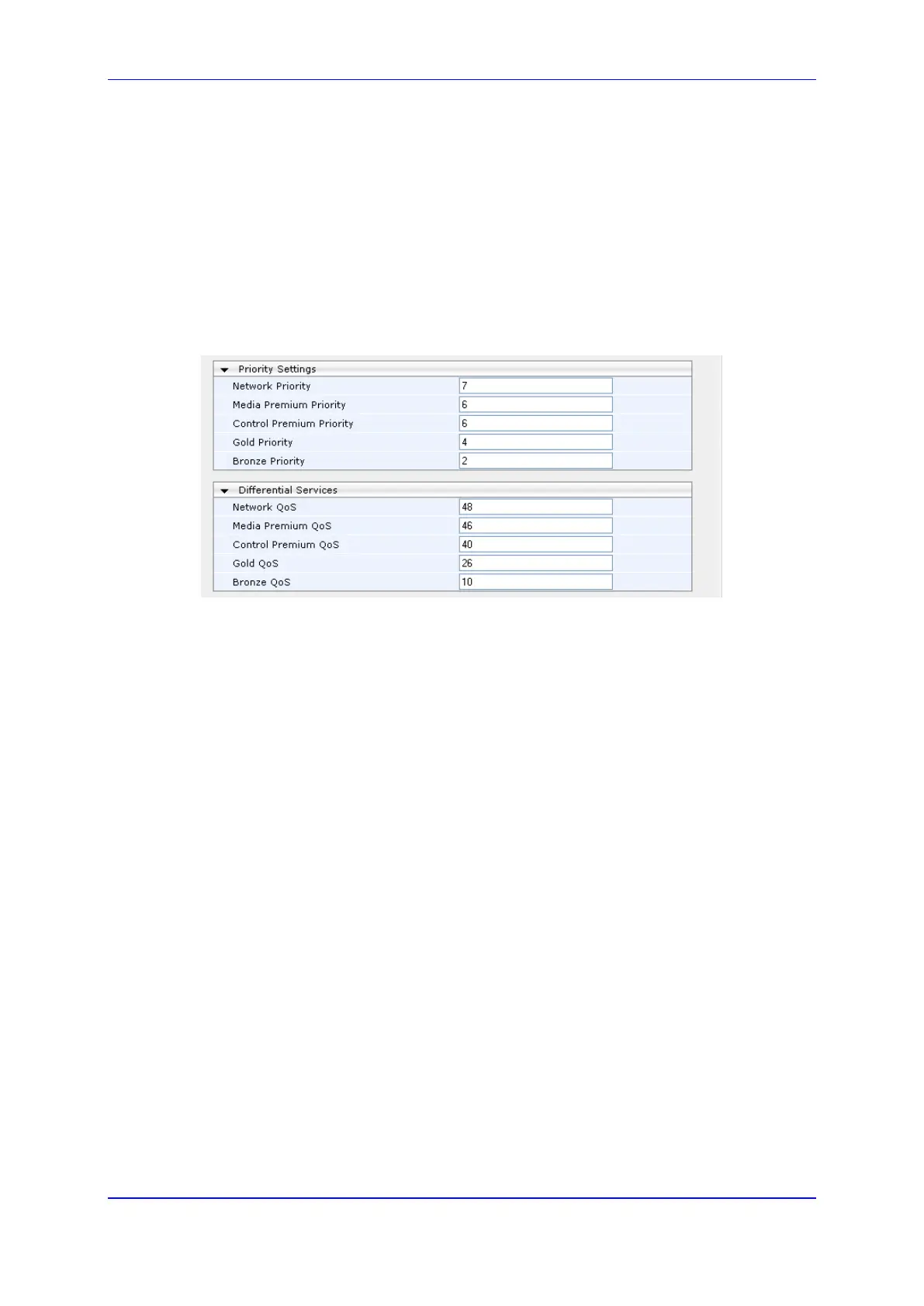 This page allows the user to configure values for the priority field of the VLAN tag, and the
