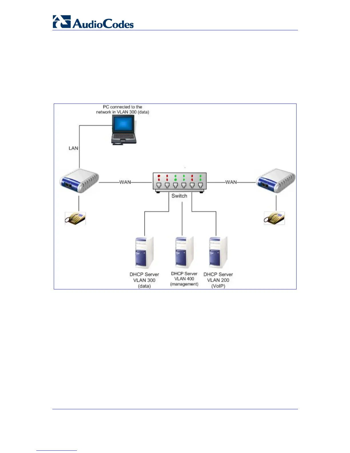 This example explains how to configure the MP-202 to use 3 separate VLANs (for VOIP,