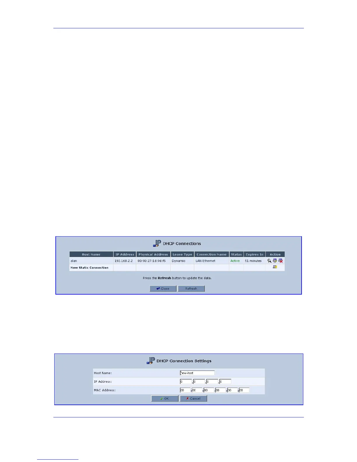 1. Click the link 'New Static Connection'; the screen 'DHCP Connection Settings' opens