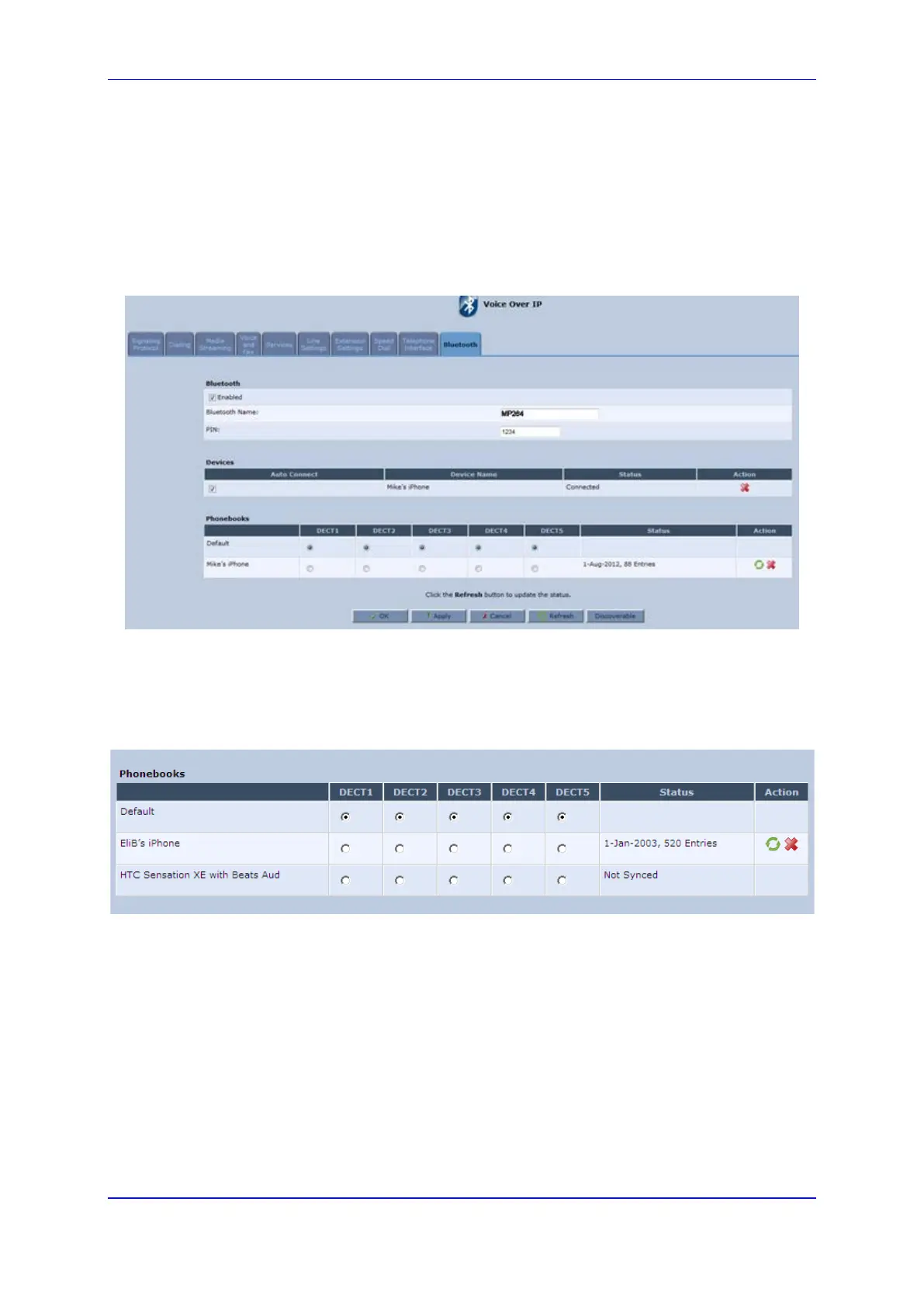 1. In the 'Voice Over IP' screen, access the Bluetooth tab; the following screen appears.