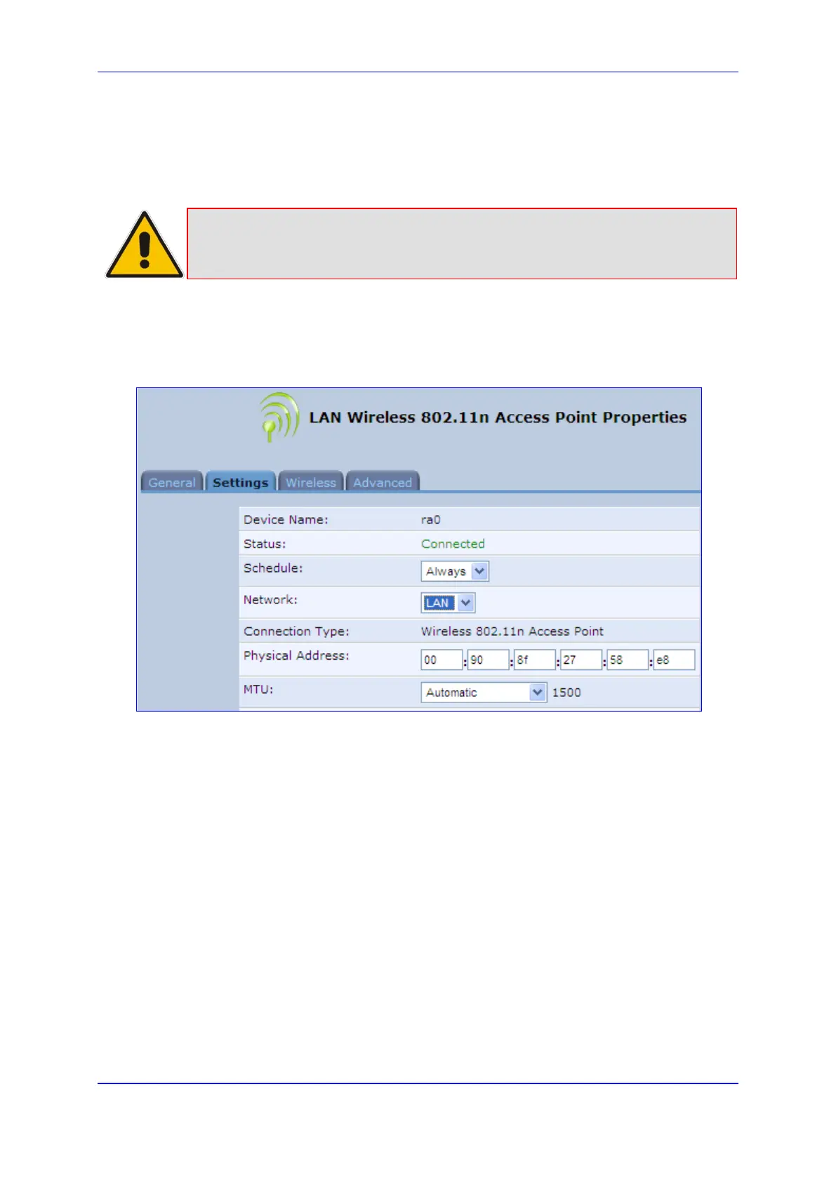 12.2.1.2 Configuring Wireless Properties under the Settings Tab