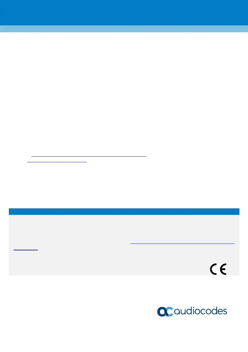 Updates to this document can be downloaded from https://www.audiocodes.com/library/technical-