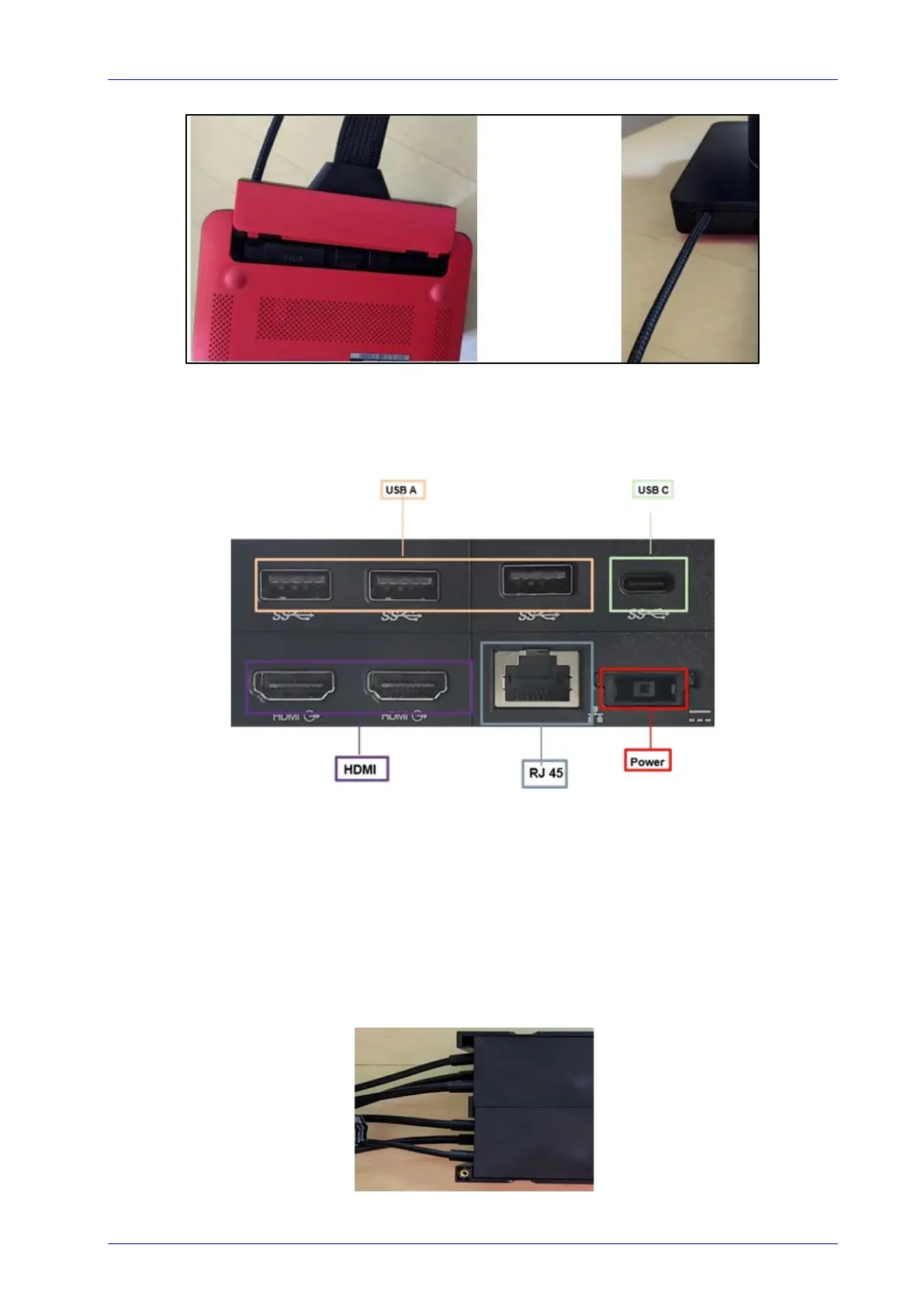 Take the yellow end of the power cable and insert it into the lower right port.