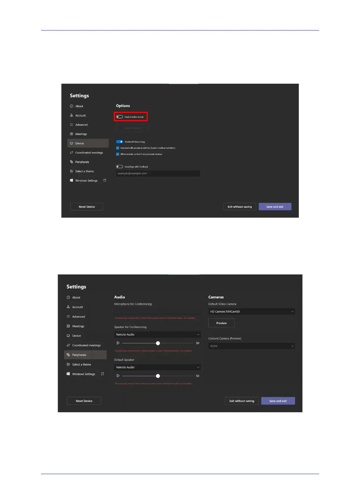 2. Select AudioCodes RX50 as ‘Conferencing’ and ‘Default Speaker’.